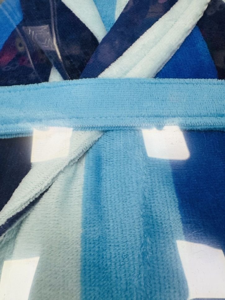 Albornoz con capucha 100 % algodón de acabado terciopelo que secan como el mejor rizo. De la marca ArcoBaleno fabricados en Galicia con los mejores acabados y los diseños más bonitos y originales. Este albornoz es una prenda de FIO TEXTIL, sinónimo de diseño y calidad.