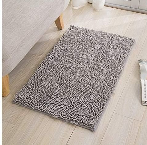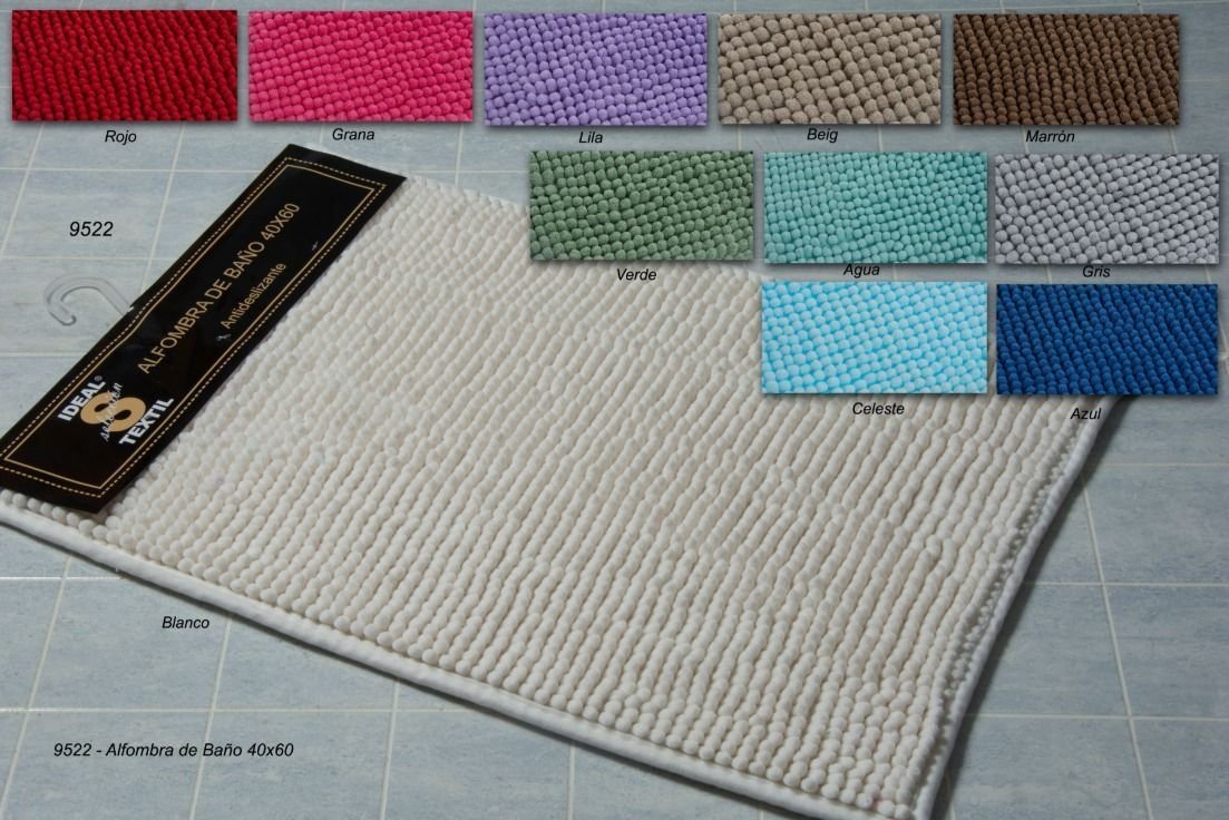 Alfombra de baño de Ideal Selección Textil en color gris, con gusanillos y suelo antideslizante. Alfombrilla de microfibra para evitar caídas o resbalones al salir de la ducha o bañera.