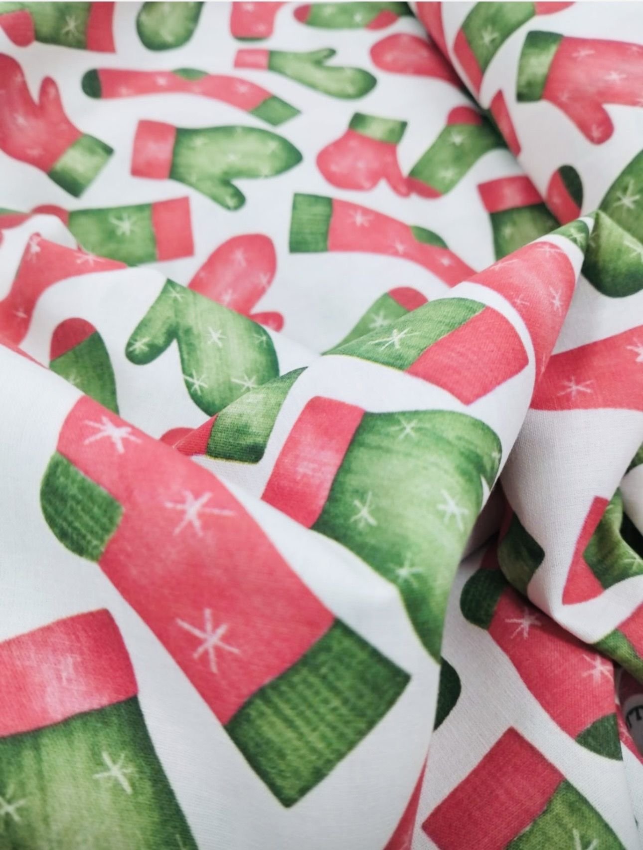 Preciosa tela de decoración navideña para la época más bonita del año. El popelín es una tela de algodón muy versátil, suave, fina y sostenida.