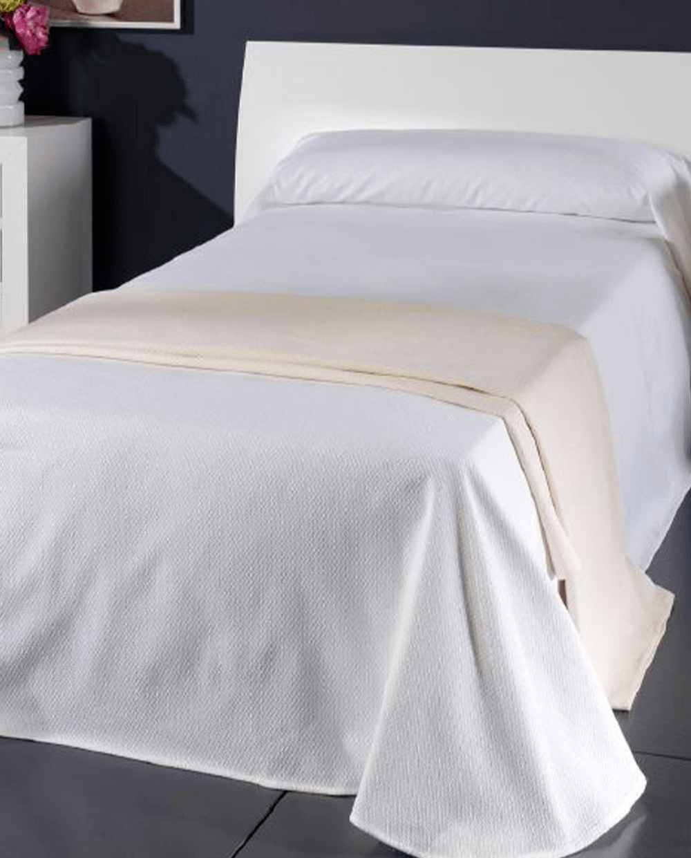 Magnífica colcha fresca y decorativa, con puntitos en Jacquard que provee a la cama de un toque elegante.