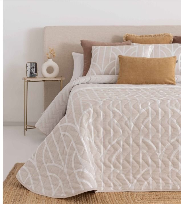 Colcha Jacquard acolchada con guata de 100 gr/m2, ideal para primavera-verano.