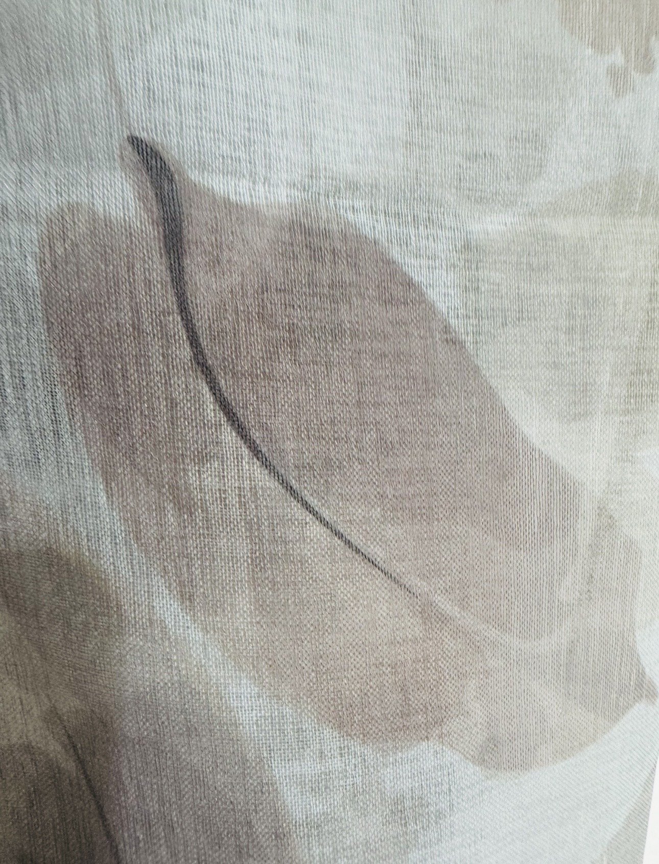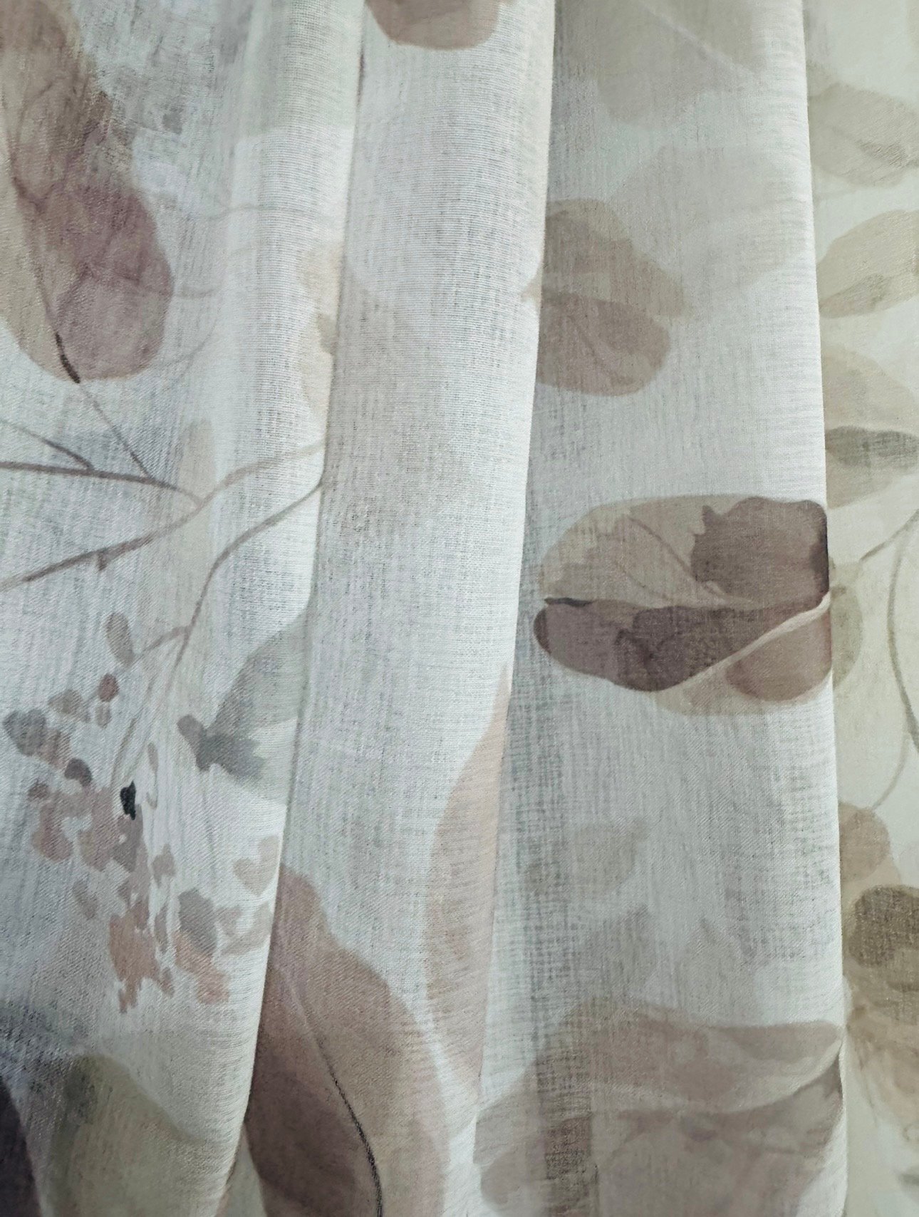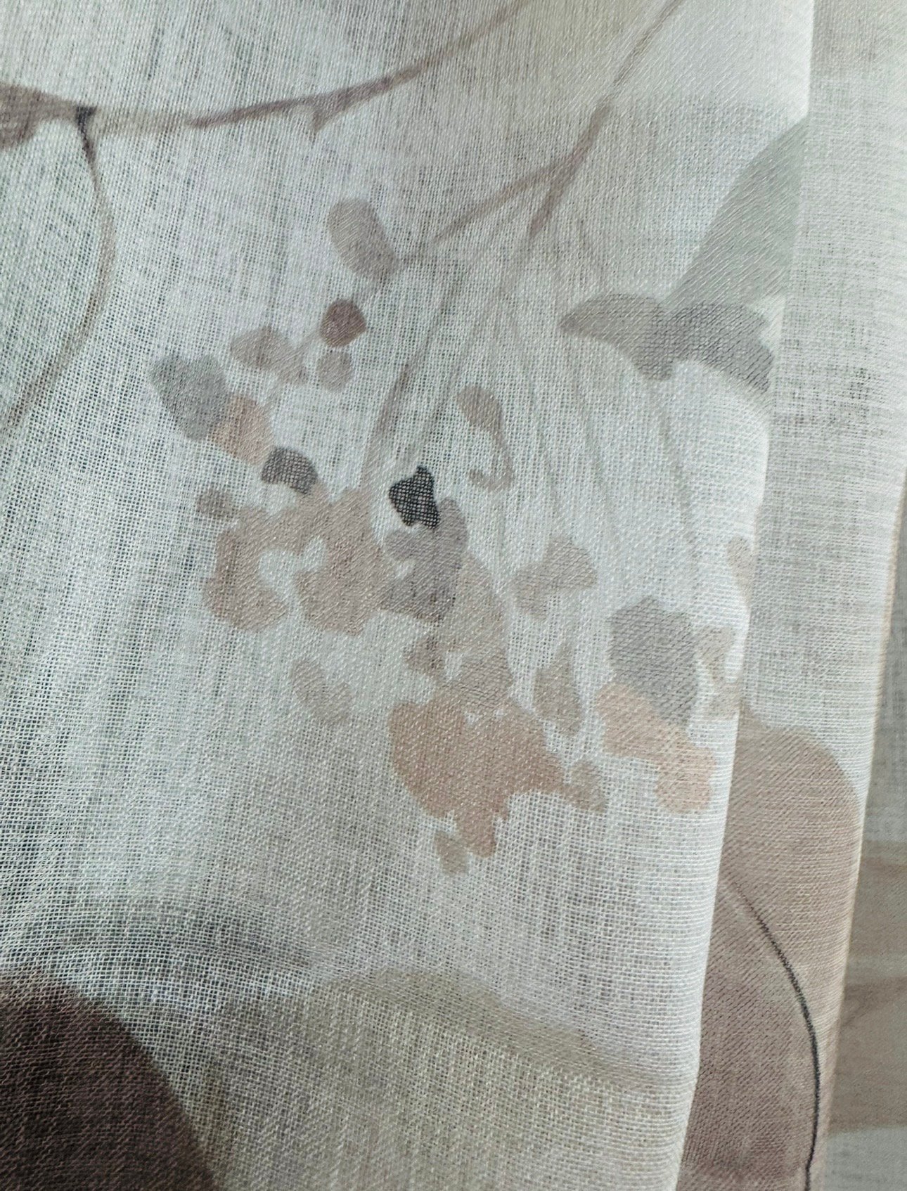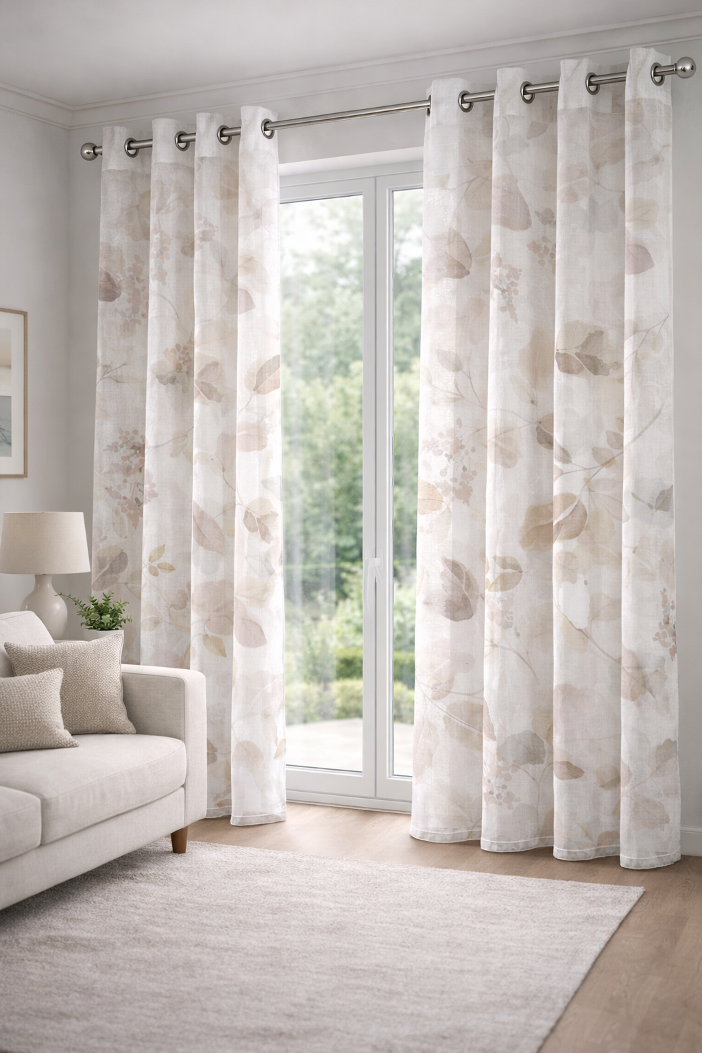 Cortina decorativa de estilo de rústico con un estilo y tacto muy natural. Modelo Aima en colores beige y grises, en fondo blanco natural, para decorar cualquier estancia. Confeccionadas en medida estándar, listas para su fácil colocación mediante su sistema de ollaos.