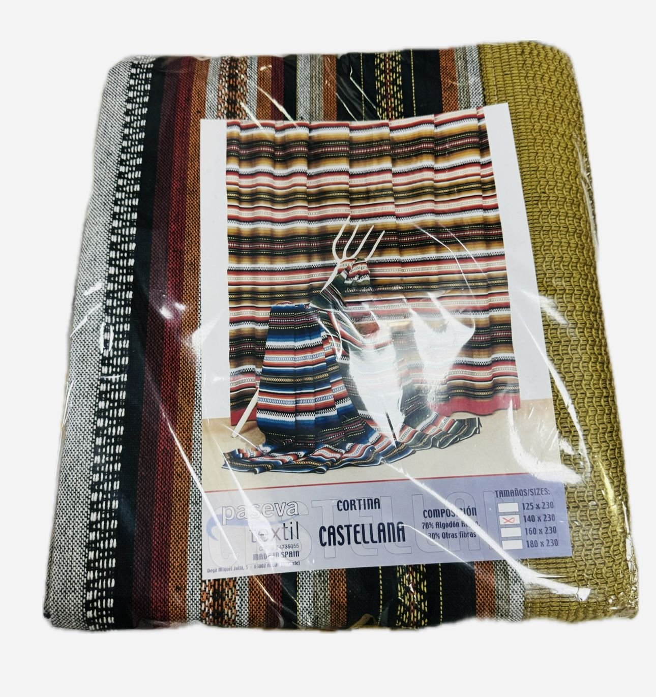 La cortina sólo lleva confeccionada la orilla inferior, la superior no tiene ningún tipo de enganche (ollaos, trabillas, etc).