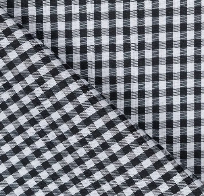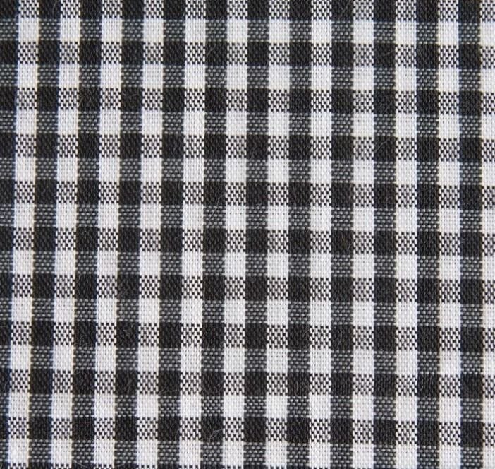 Tela de cuadros Vichy negros de 5 milímetros. El cuadro Vichy es una tela sostenida y fina, ideal para batas de colegios, bolsa para el pan y manteles. El cuadro de Vichy se utiliza para manualidades, decoración y labores.