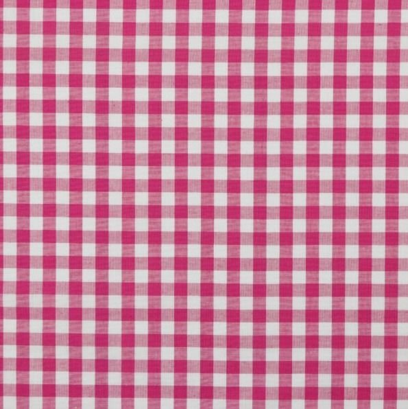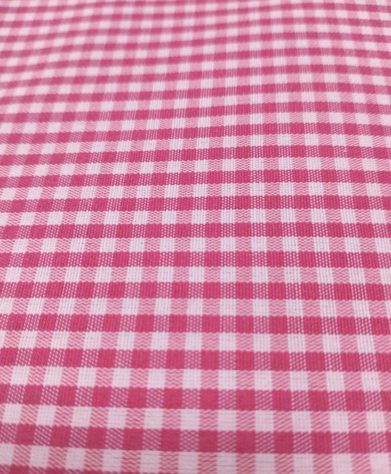 Tela de cuadros Vichy rosa fucsia de 3 milímetros. El cuadro Vichy es una tela sostenida y fina, ideal para batas de colegios, bolsa para el pan y manteles. El cuadro de Vichy se utiliza para manualidades, decoración y labores.