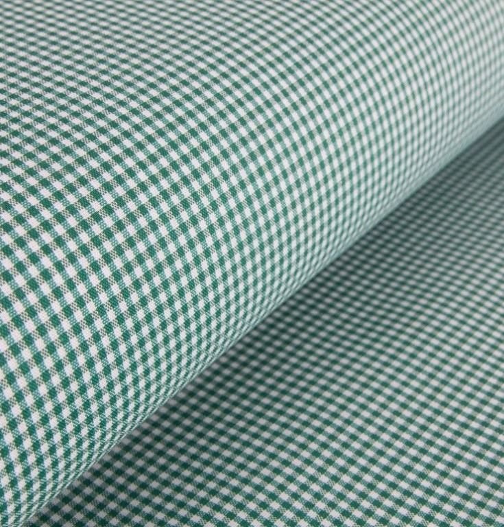 Tela de cuadros Vichy verde de 3 milímetros. El cuadro Vichy es una tela sostenida y fina, ideal para batas de colegios, bolsa para el pan y manteles. El cuadro de Vichy se utiliza para manualidades, decoración y labores.