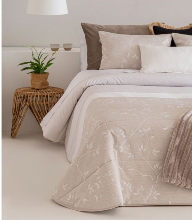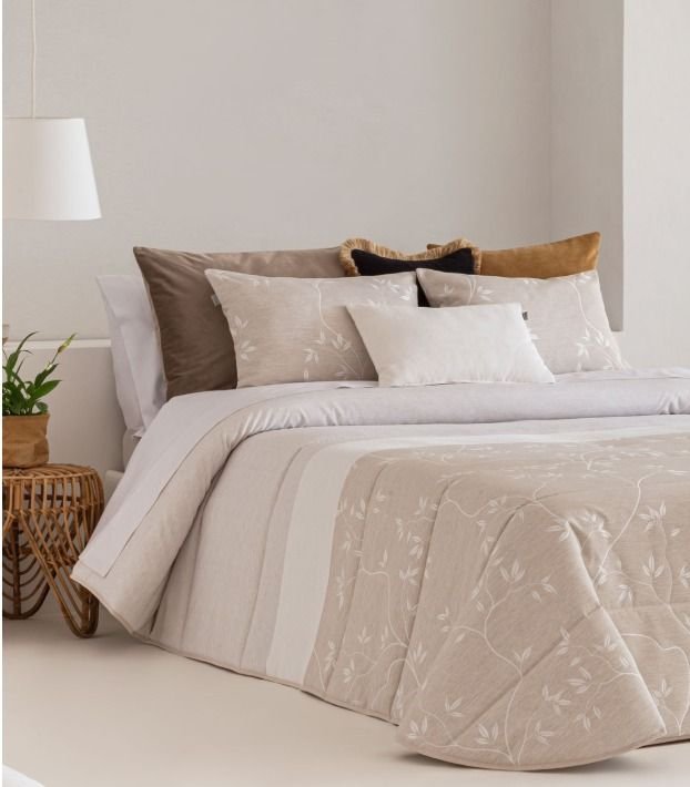Edredón jacquard de la firma Sandeco acolchado con guata de 150 gr/m2, ideal para otoño-invierno. Disponible en varios colores, Beige y gris.