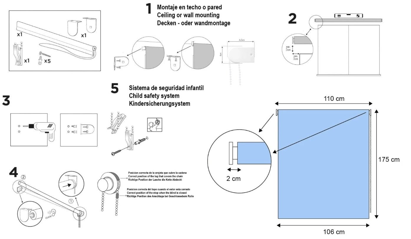 • Mecanismo enrollable sencillo.