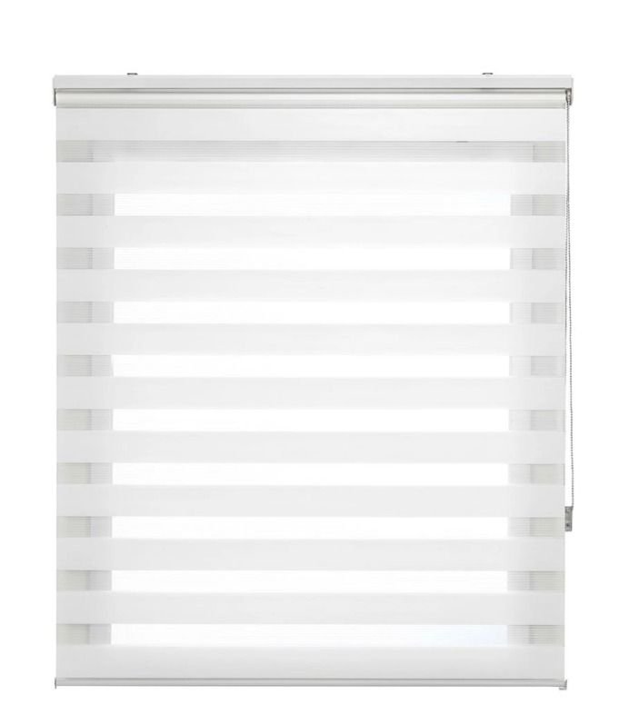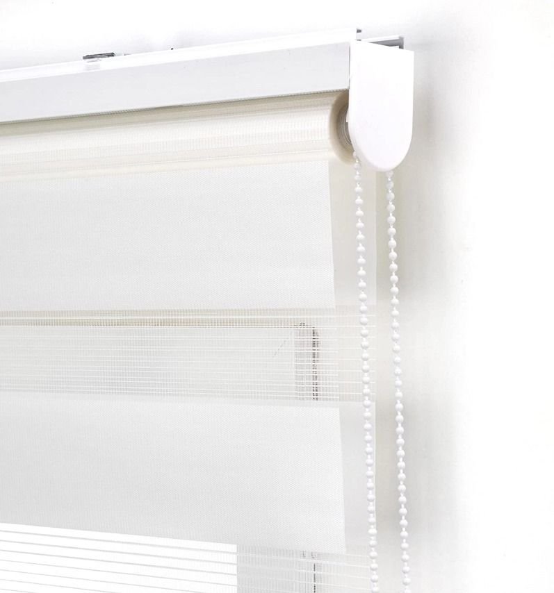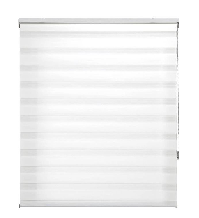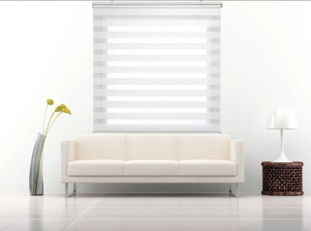 Estor Noche y Día enrollable traslúcido liso modelo Venecia de la marca Zebra Textil acabado en tubo de aluminio 28mm.