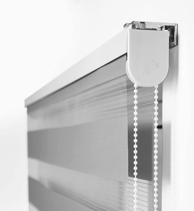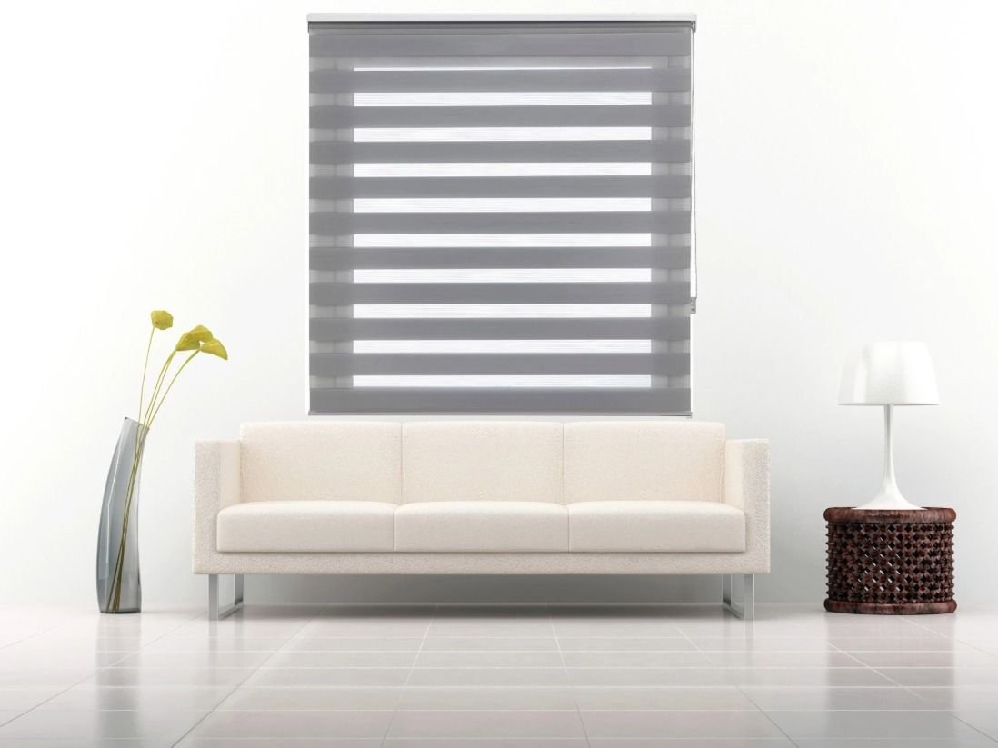 Estor Noche y Día enrollable traslúcido liso modelo Venecia de la marca Zebra Textil acabado en tubo de aluminio 28mm.