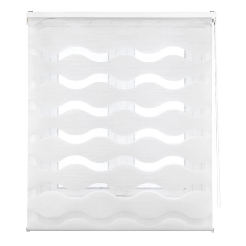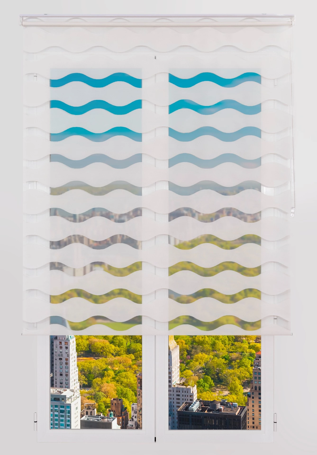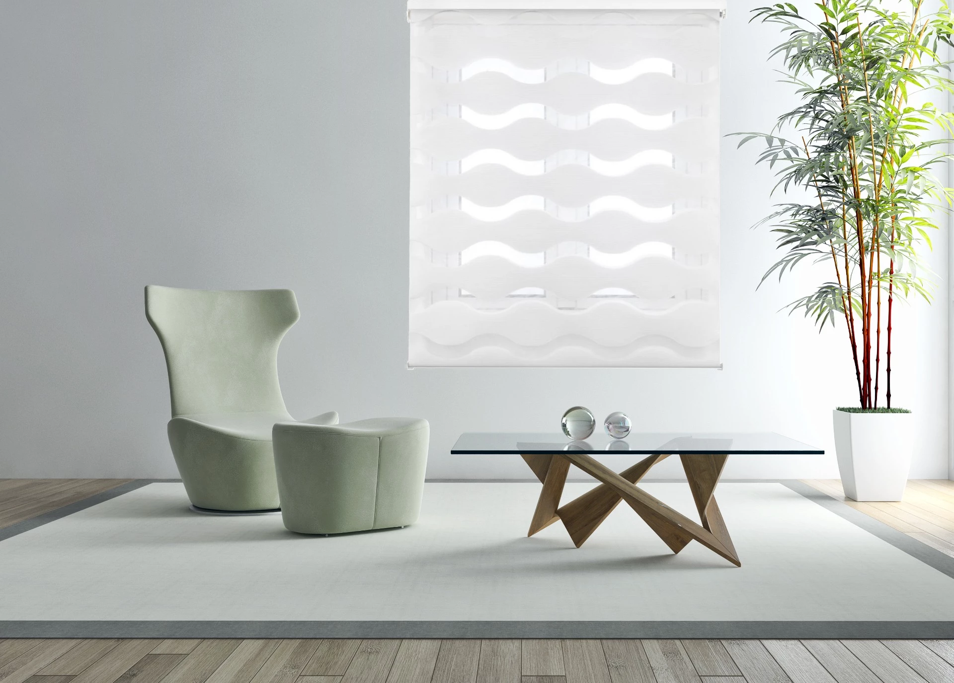 Estor Noche y Día enrollable traslúcido liso modelo Waves de la marca Zebra Textil acabado en tubo de aluminio 28mm.