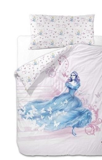 Un conjunto de cama con los colores y las imágenes de LA CENICIENTA DE DISNEY y su película original.