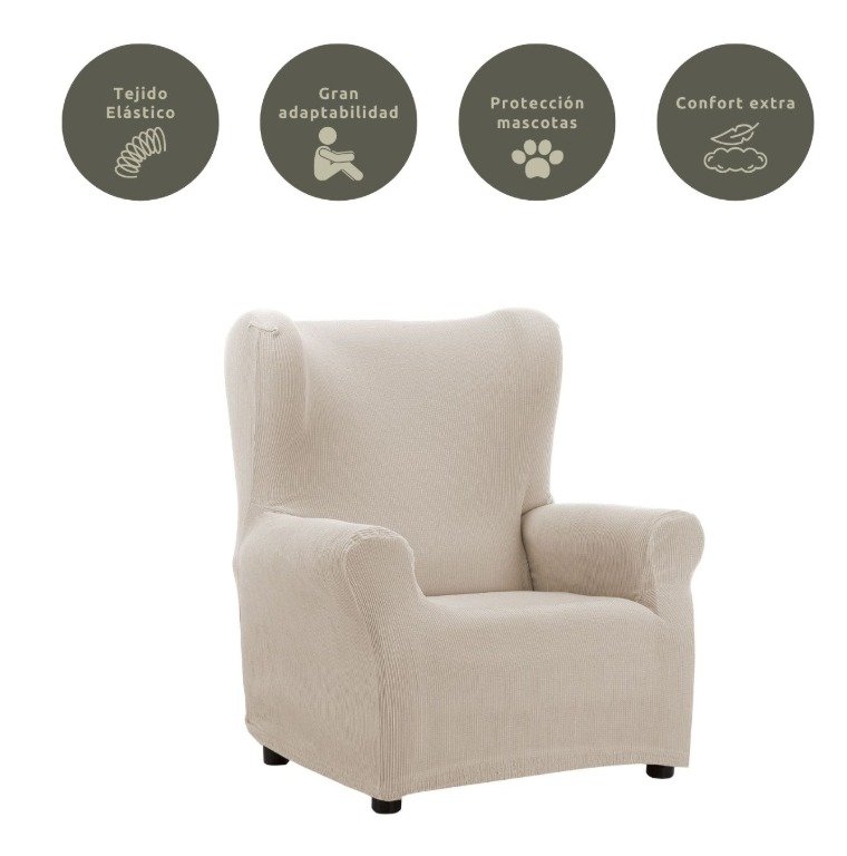 Funda de Sillón Elástica Modelo Orejero bielástica con un bonito y elegante diseño. Presentamos el modelo Java, que destaca por su tejido elástico. Se encuentra disponible en 17 colores y en diferentes medidas para tu sofá. Es una de las opciones más económicas y mejor calidad del mercado. Además, esta Funda de Sillón está fabricada en España. Para mantener su calidad, recomendamos lavar máximo a 30º.