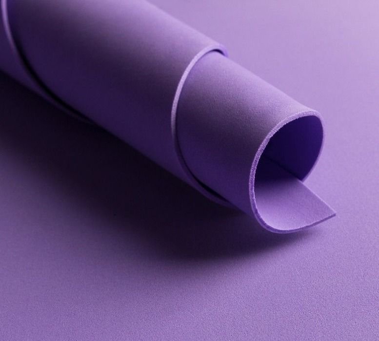 Goma Eva de color violeta para manualidades. La goma Eva o foamy nos ofrece un gran abanico de posibilidades a la hora de hacer manualidades. Es un material termoplástico al que podemos aplicar calor y deformar a nuestro gusto y necesidad. Es idóneo para recortar y diferentes técnicas de pintura. Además, es un material perfecto para que los niños practiquen su creatividad, ya que al no tener cortes cortantes y ser blando se trata de un material seguro para los más pequeños.
