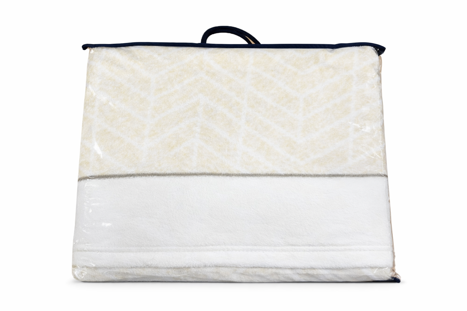 Juego de sábanas de coralina de la firma Cañete, con un diseño sencillo y elegante, con dibujos de rayas sobre un fondo claro. Es un modelo sencillo y combinable.