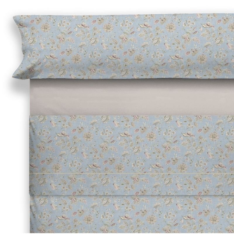 Juego de sábanas satén en algodón 200 hilos que corresponde al glamoroso juego de vestiduras con tacto sedoso para la cama KOMEN. Detecta una silueta sensacional con la ilustración de refinadas flores que puedes escoger en color azul, lino o rosa.
