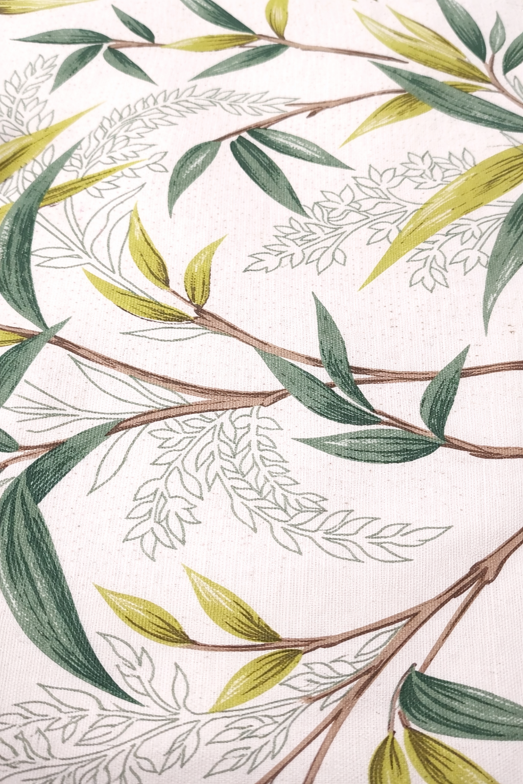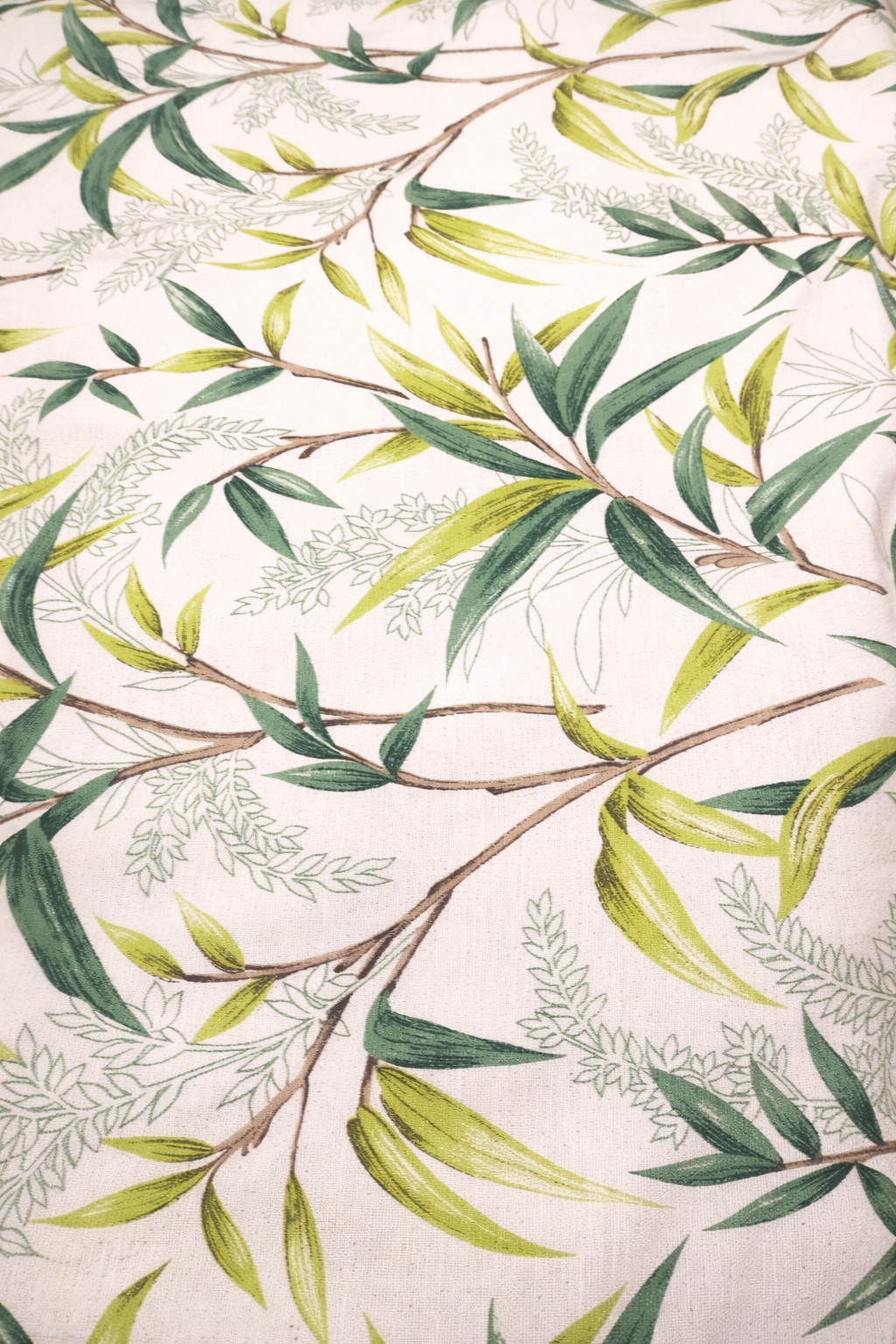 Loneta estampada modelo Bambú de alta calidad con diseño de hojas en tonos verdes. Este tejido decorativo es perfecto para confeccionar manteles, cojines y cortinas, gracias a su resistencia y excelente acabado. Su estampado vegetal aporta un estilo moderno y natural, ideal para cualquier ambiente del hogar.