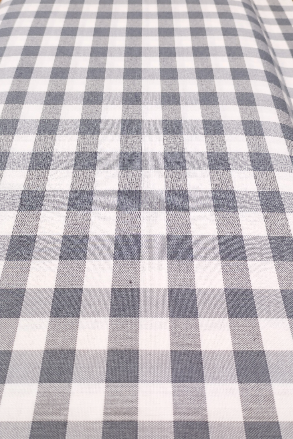 Tela de loneta Gamonal cuadros Vichy negro de 15 milímetros. El cuadro Vichy es una tela sostenida y fina, ideal para batas de colegios, bolsa para el pan y manteles. El cuadro de Vichy se utiliza para manualidades, decoración y labores.