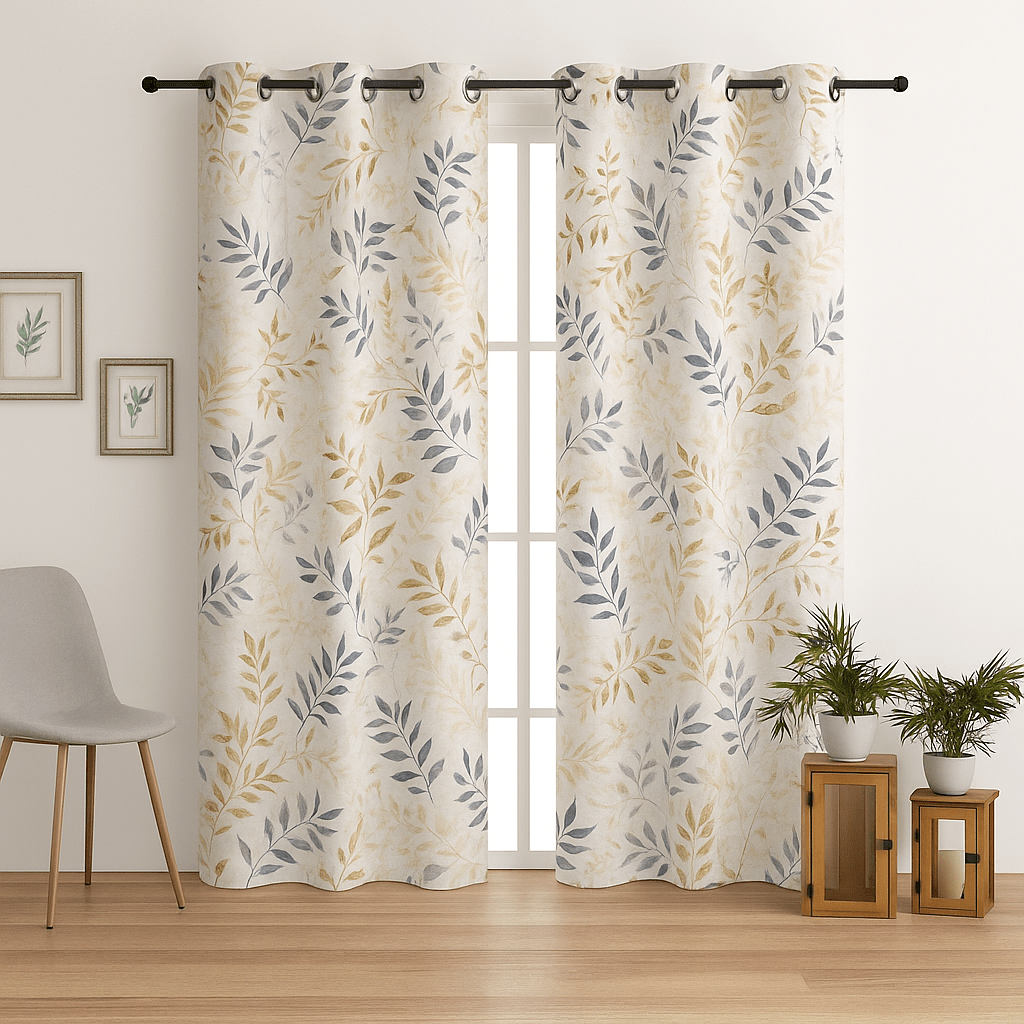 Crea un ambiente elegante y festivo con esta loneta estampada digitalmente en tonos grises y tostado.
