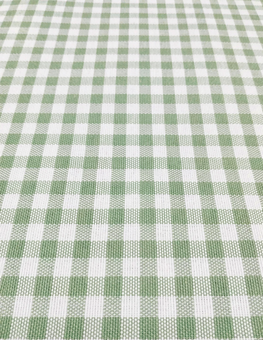 Descubre nuestra loneta modelo Rubí de cuadros vichy en verde agua y blanco con cuadro pequeño de 3 mm, ideal para proyectos de decoración con un acabado fino y delicado. Este tamaño de cuadro aporta un estilo más elegante y uniforme que los vichy grandes, perfecto para ambientes cuidados y modernos.