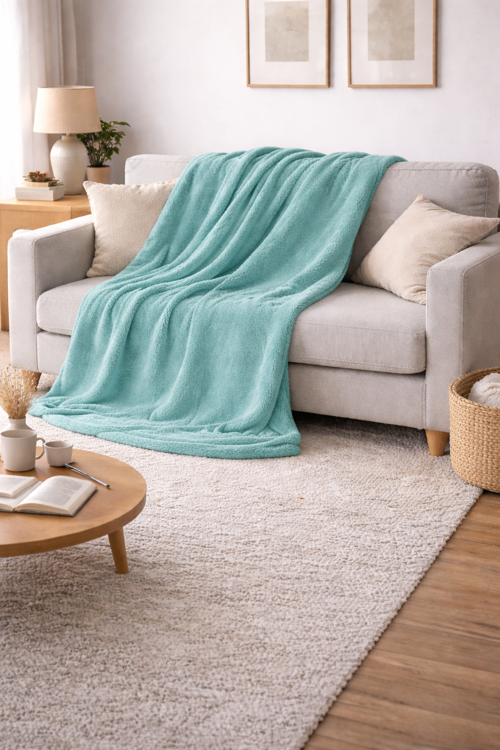 Manta plaid coralina tacto muy suave, ideal para sofá de Duffi. No encoge, no se deforma, no deja pelusas ni hilos y tiene una gran resistencia al lavado frecuente.