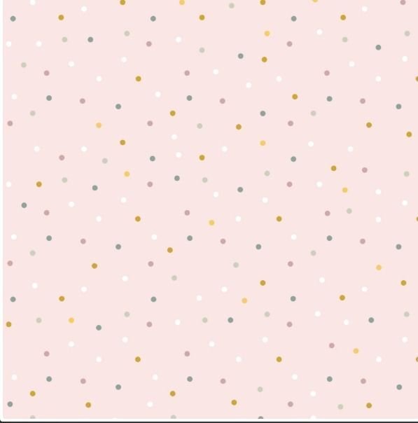 Esta maravillosa muselina estampada con topitos pequeños en colores pasteles muy alegre, es muy suave y ligera.