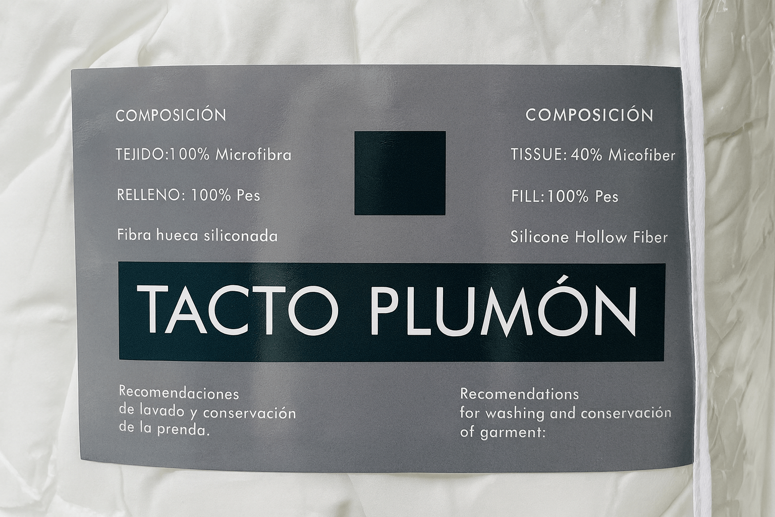 - Relleno: 100% fibra poliéster hueca siliconada.