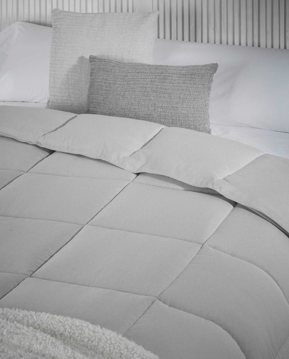 Nórdico-Duvet. Tejido frontal: microfibra hilo tintado 95g/m2 – Reverso en color solido: 90 g/m2. Relleno: 100% poliéster 3D 300g/m2. Acabado con doble costura, esquinas rectas. Envase con bolsa del mismo tejido.