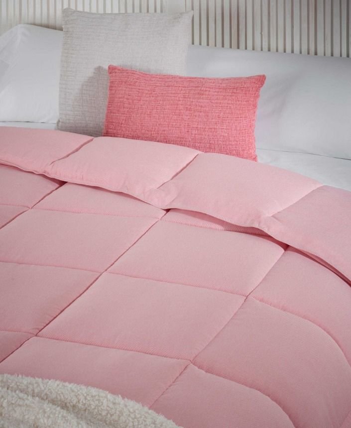 Nórdico-Duvet. Tejido frontal: microfibra hilo tintado 95g/m2 – Reverso en color solido: 90 g/m2. Relleno: 100% poliéster 3D 300g/m2. Acabado con doble costura, esquinas rectas. Envase con bolsa del mismo tejido.