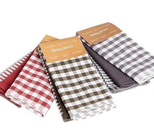 Máxima absorción y cuidado tanto para tu vajilla, sartenes, ollas, cazuelas y acabado de tu cocina; así como para la piel de tus manos con el Juego de Paños de Cocina Deskarao confeccionados con sarga de algodón.