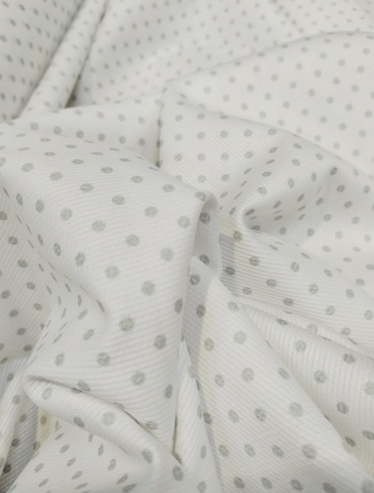 Piqué Algodón Blanco y Lunares Gris Claro