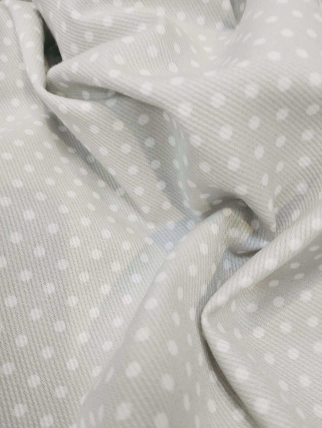 Piqué Algodón Gris Claro con Lunares Blancos