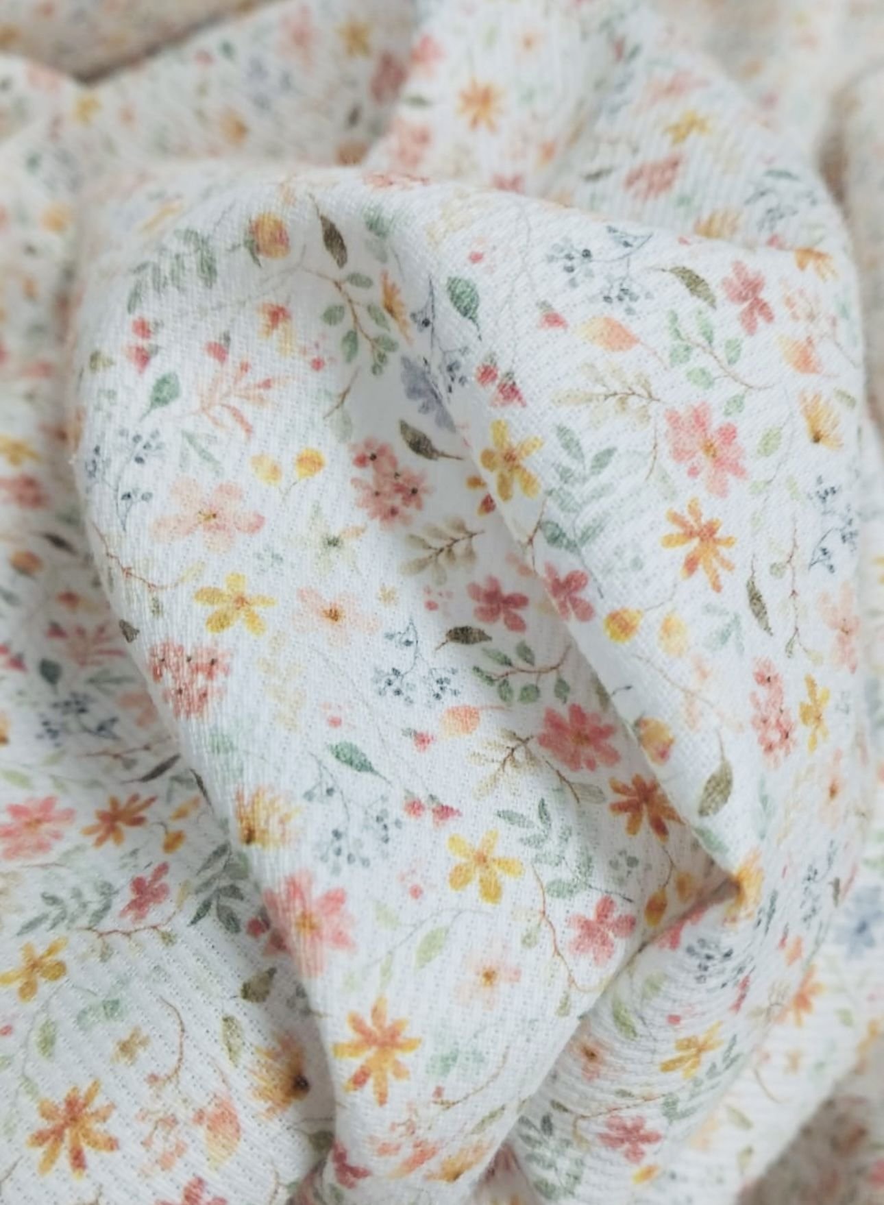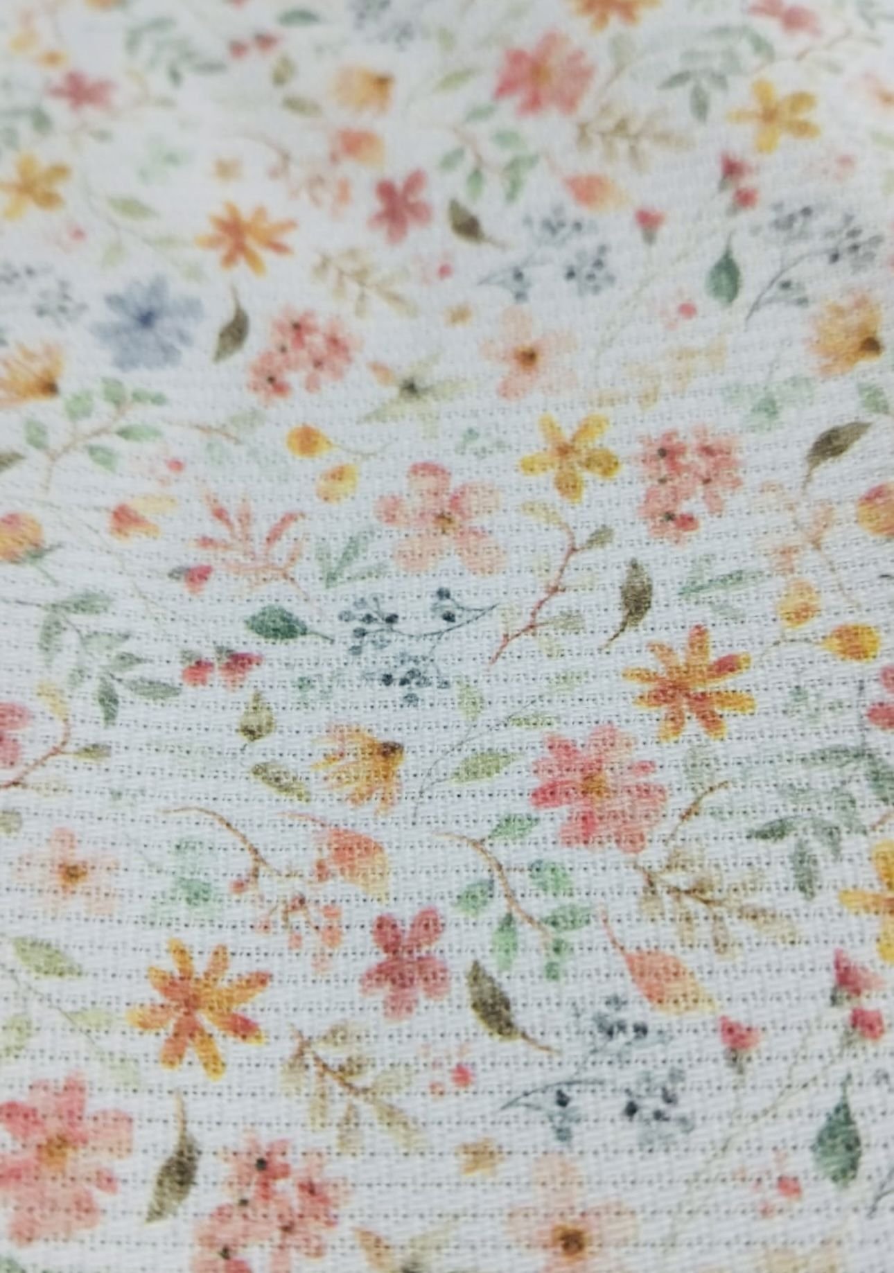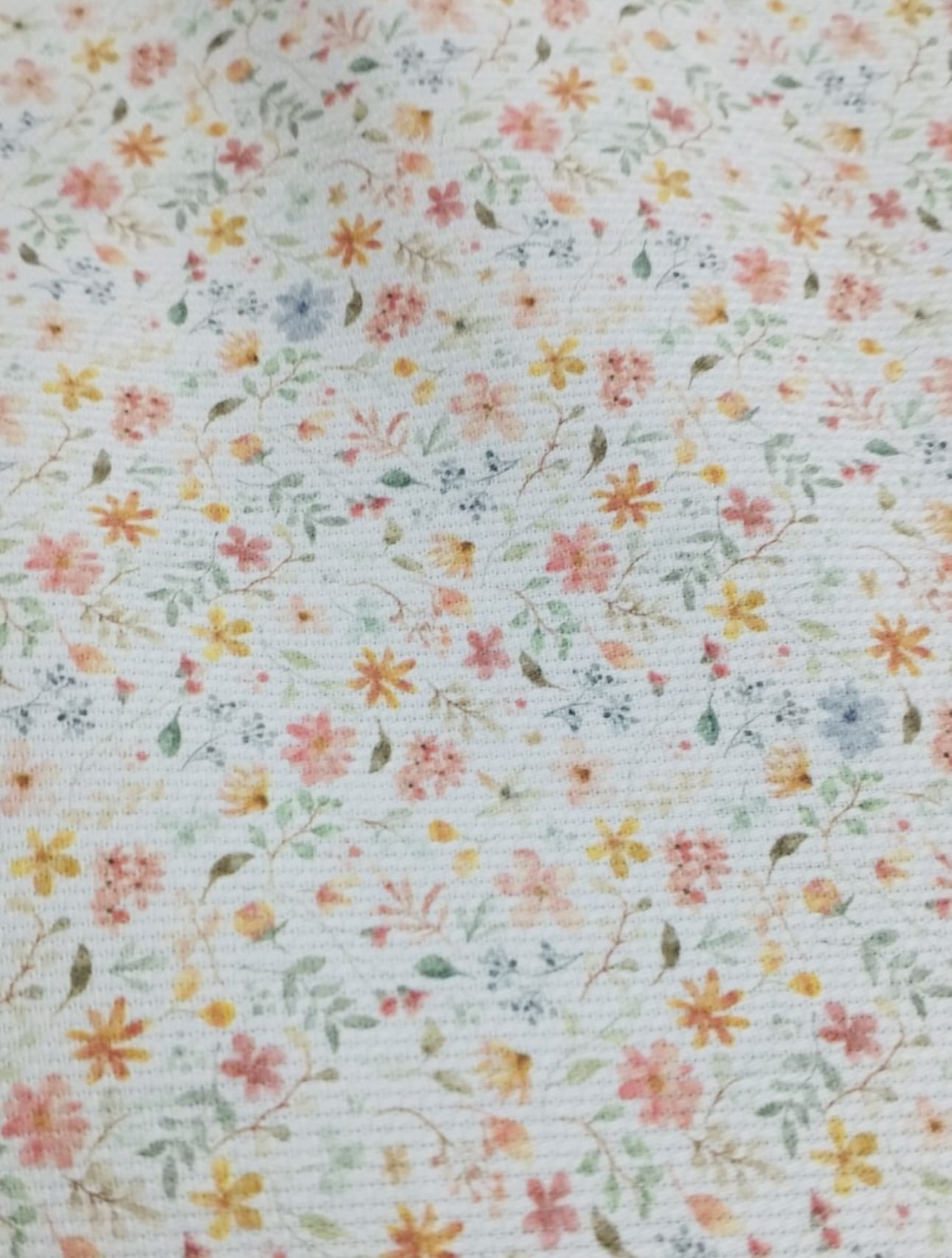 Piqué de algodón es una tela infantil de algodón, con un estampado de dibujos infantiles de flores muy elegantes en colores pasteles. La característica principal es la suavidad al contacto con la piel, de textura muy agradable. Tela estampada infantil para vestidos y faldas, confección de camisas y pantalones. También podrás confeccionar ropa de cama, como sábanas, cucos, arrullos y moisés.