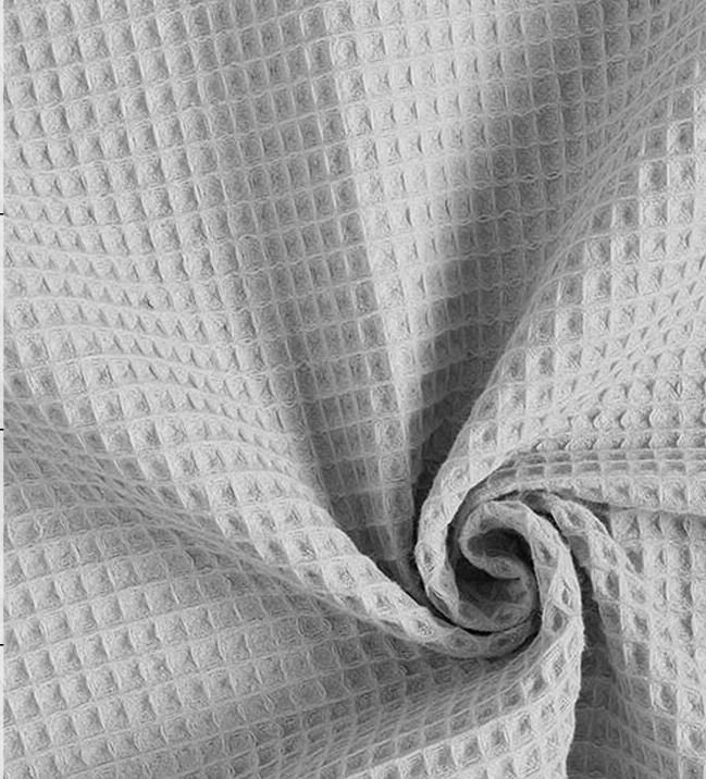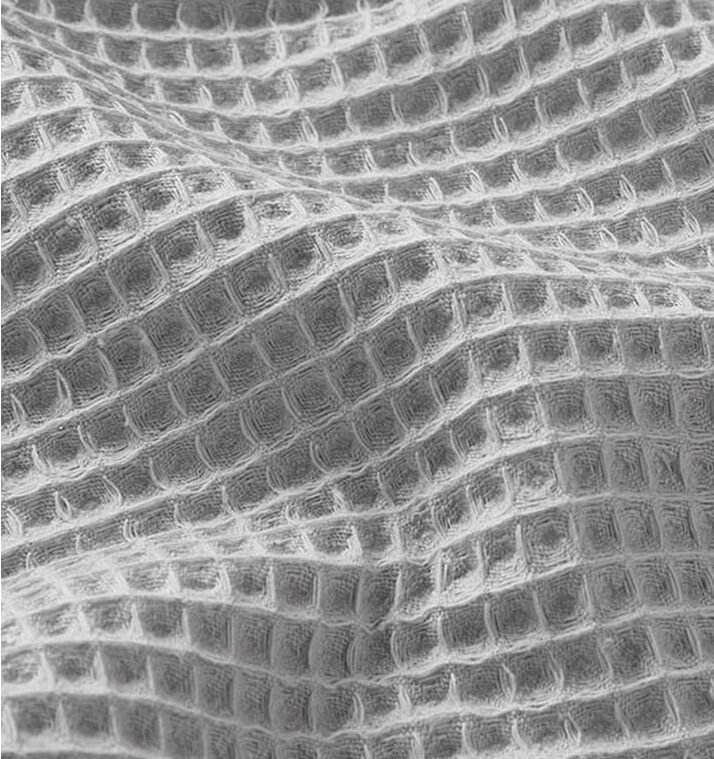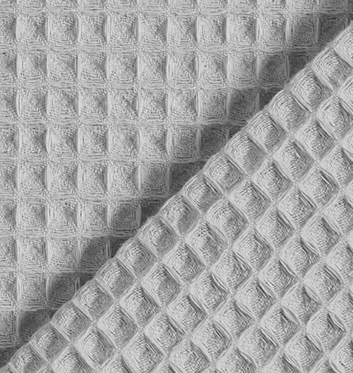 Tela piqué Waflle con el cuadro grande para toallas color gris claro. Tela también conocida como toalla piqué, por los cuadraditos en relieve que componen el tejido. Tiene el cuerpo y peso ideal para colchas de verano, arrullos y complementos para bebé. Perfecta para confección de albornoces. Tela muy dulce debido a su composición de algodón, pudiéndose utilizar como saco de carritos para bebe y colcha de verano.