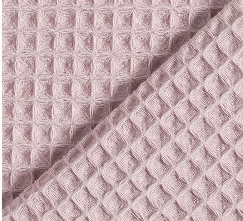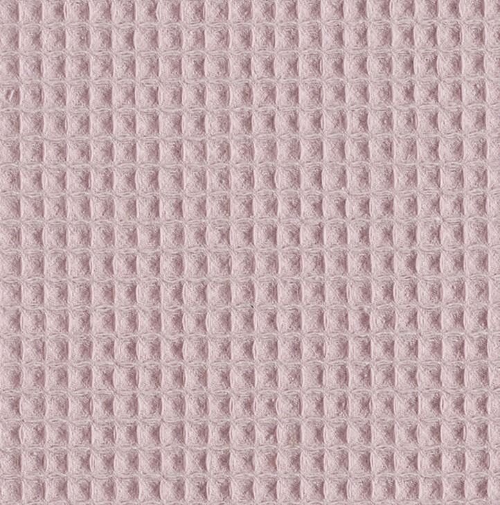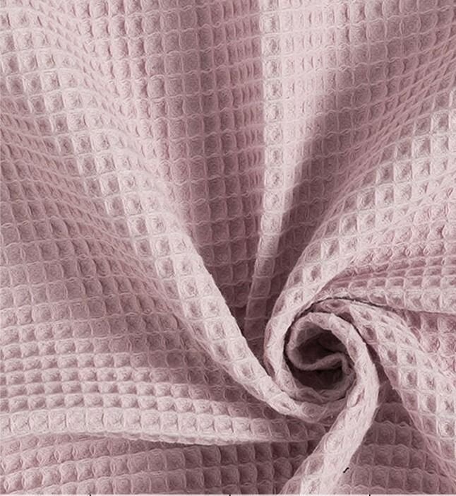 Tela piqué Waflle con el cuadro grande para toallas color rosa claro. Tela también conocida como toalla piqué, por los cuadraditos en relieve que componen el tejido. Tiene el cuerpo y peso ideal para colchas de verano, arrullos y complementos para bebé. Perfecta para confección de albornoces. Tela muy dulce debido a su composición de algodón, pudiéndose utilizar como saco de carritos para bebe y colcha de verano.