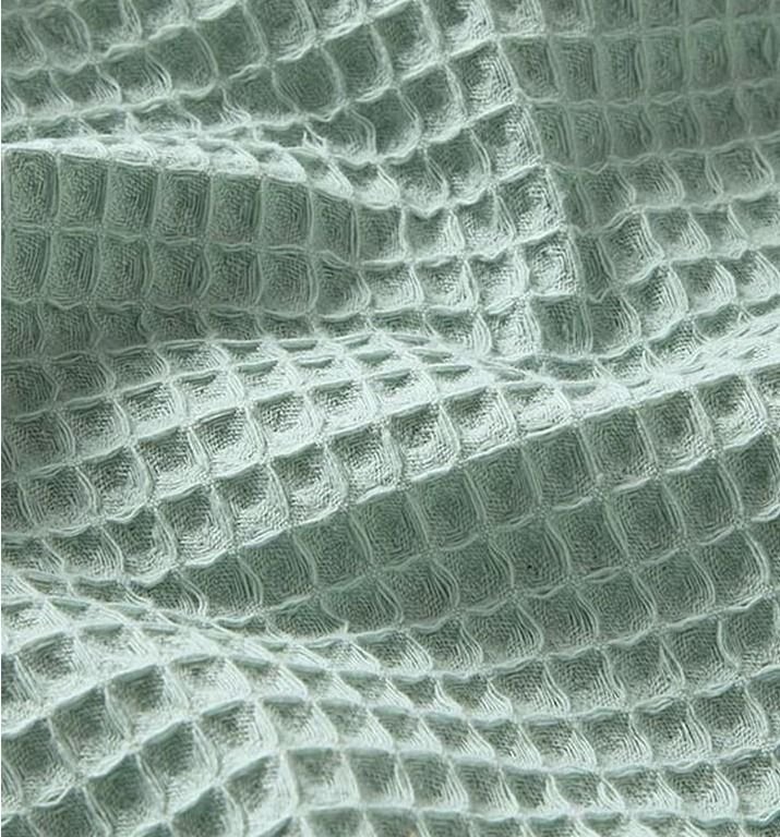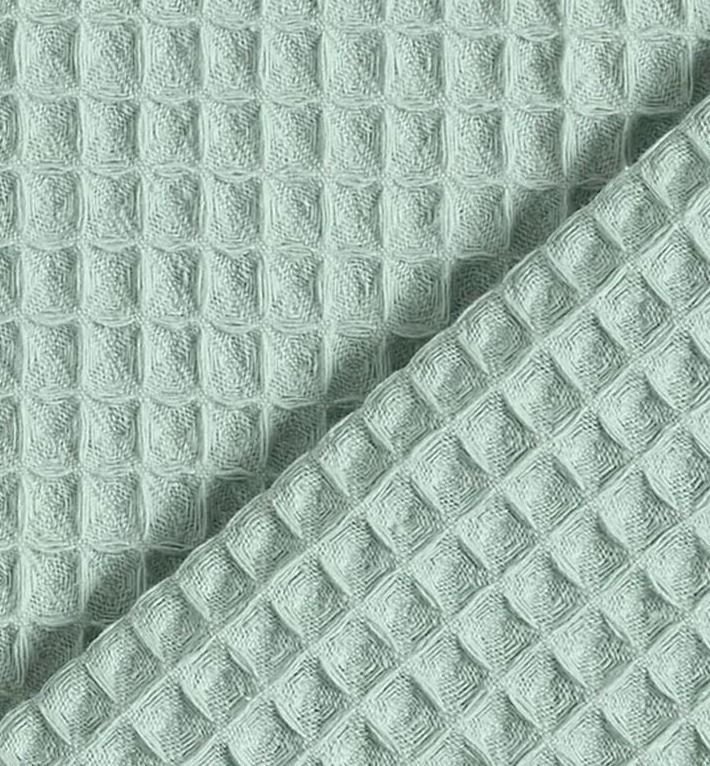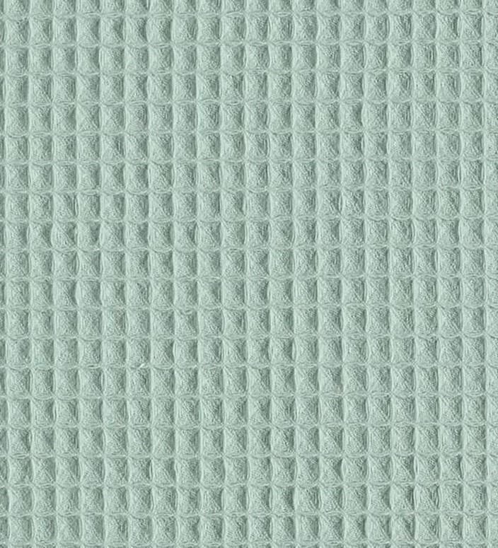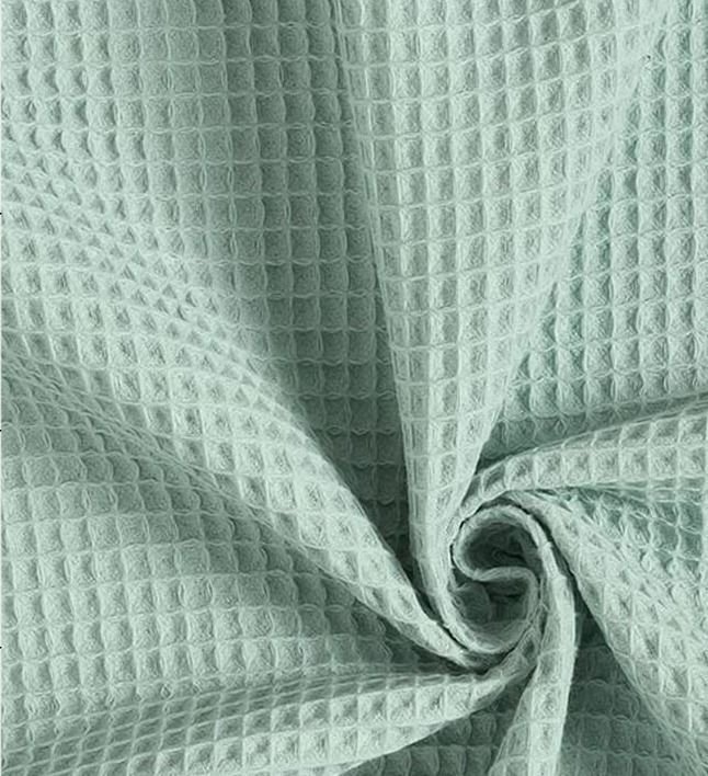 Tela piqué Waflle o Gofre con el cuadro grande para toallas color verde agua. Tela también conocida como toalla piqué, por los cuadraditos en relieve que componen el tejido. Tiene el cuerpo y peso ideal para colchas de verano, arrullos y complementos para bebé. Perfecta para confección de albornoces. Tela muy dulce debido a su composición de algodón, pudiéndose utilizar como saco de carritos para bebe y colcha de verano.