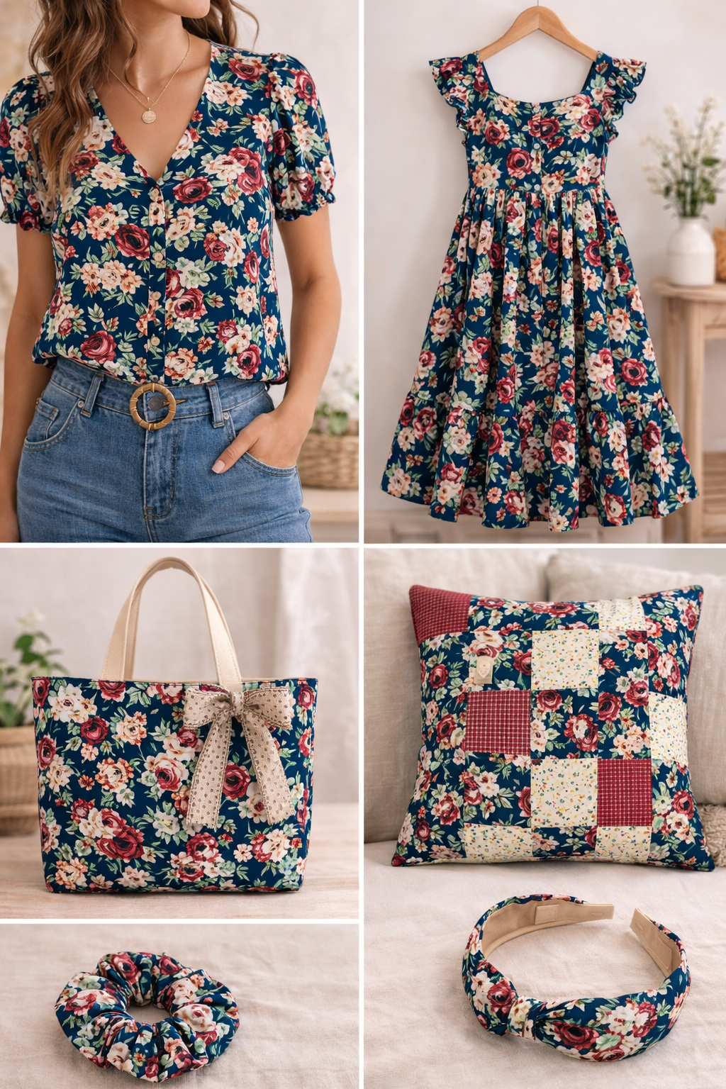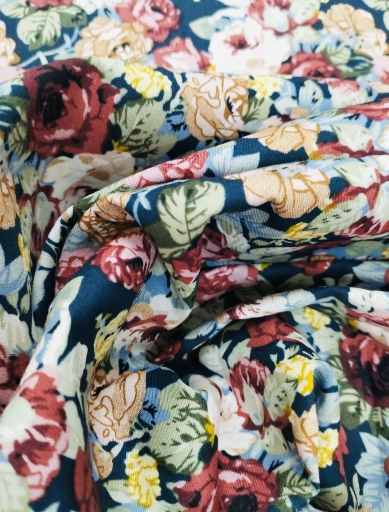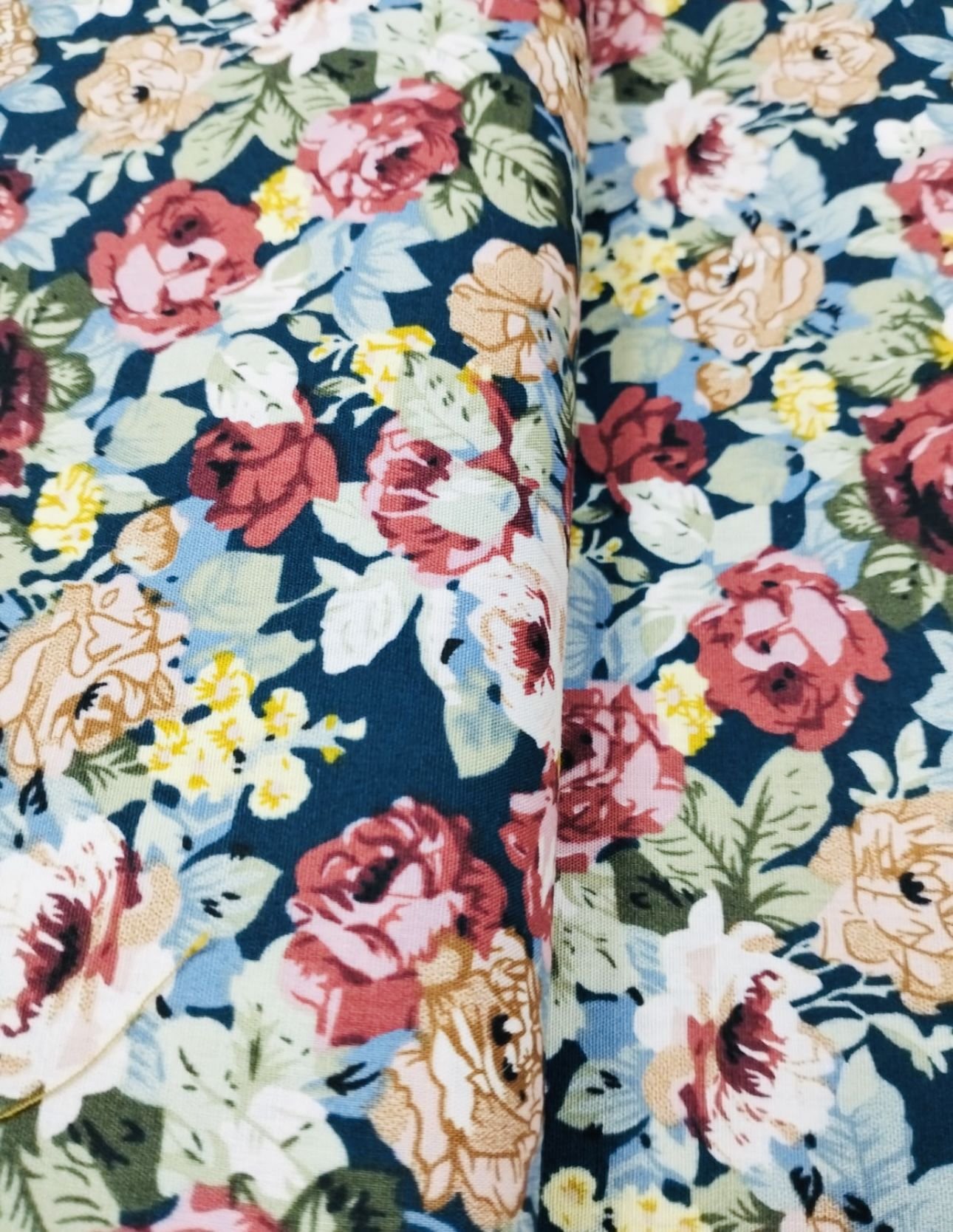 Se trata de un popelín fino con estampado de flores, sin mucho apresto y tampoco mucha caída. Ideal para camisería, blusa, tela para bolsillo, pancartas e infinidad de usos como tela básica que es. Telas ideales para Patchwork.