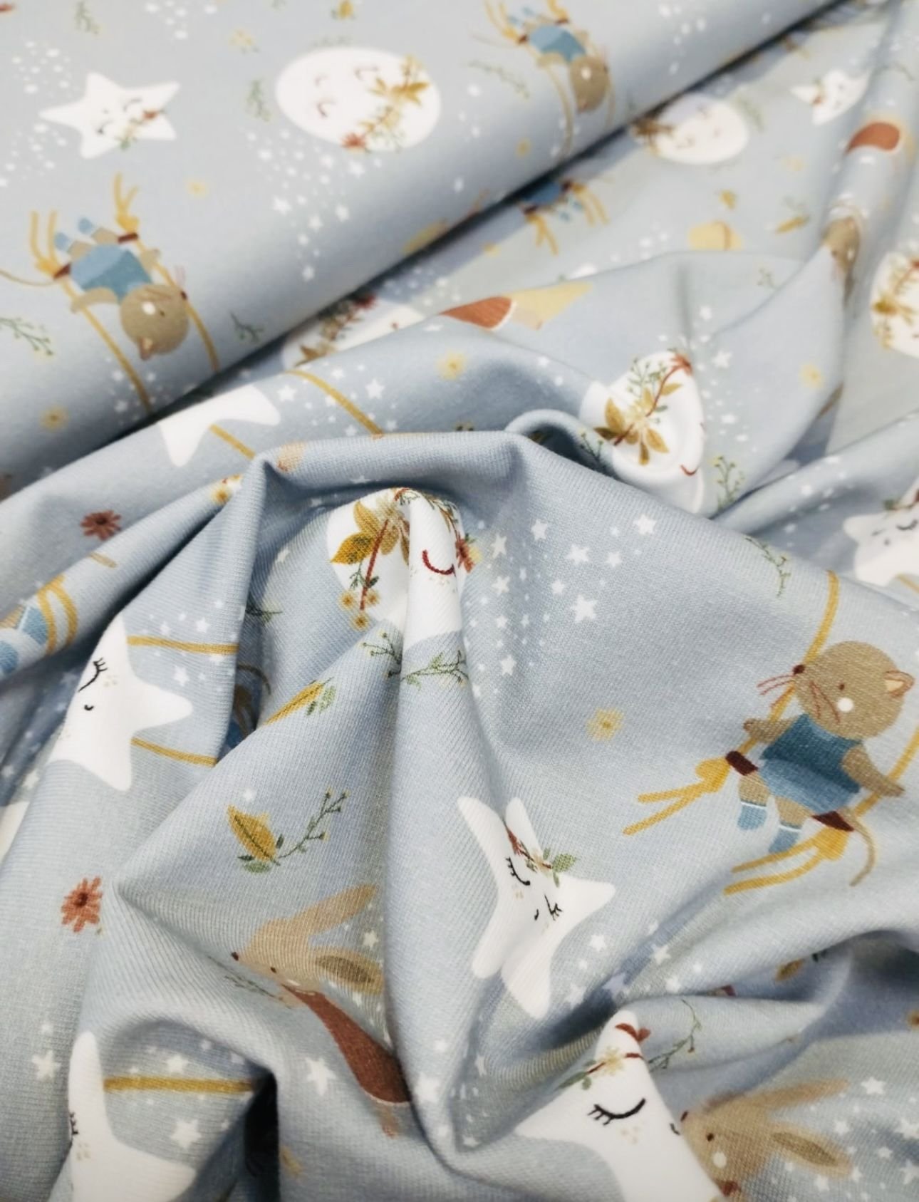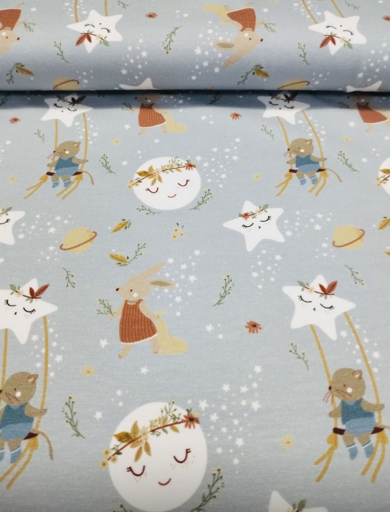 Punto de algodón 100% infantil con certificado OEKO-TEX. Modelo 7004 Spring. Punto para confeccionar camisetas, vestidos, faldas y pantalones, así como todo tipo de prendas ajustadas. Estampado de flores muy alegre para la primavera.