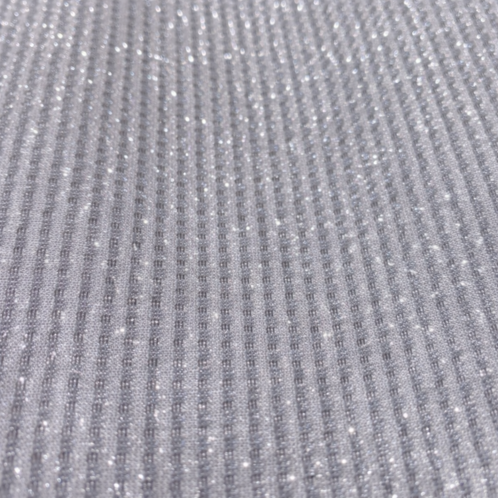 Con una base sintética suave y flexible, este tejido ofrece comodidad, adaptabilidad y una excelente caída, manteniendo su forma incluso al estirarse. El brillo integrado no se desprende, lo que garantiza un resultado duradero y de alta calidad.