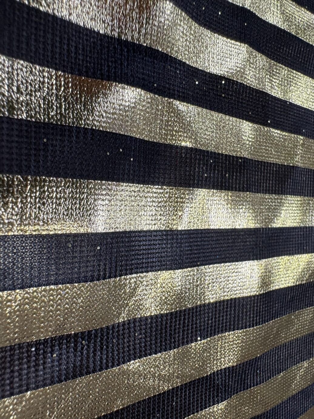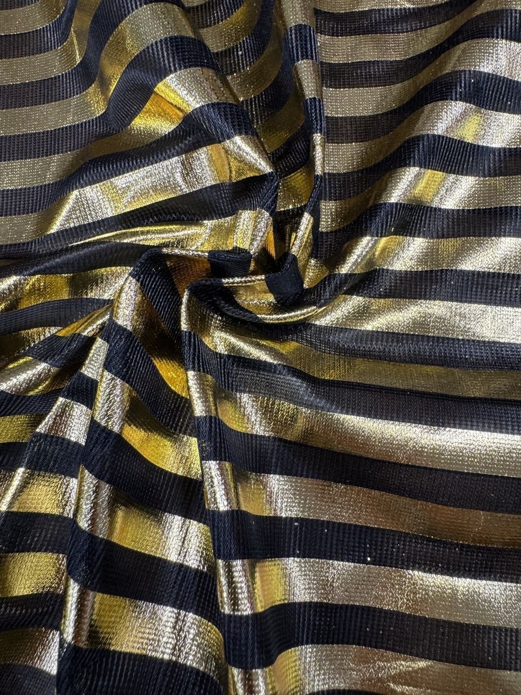 Tela para disfraces de estampado de rayas dorado. El raso es una tela muy sencilla, satinada y sostenida, muy fácil de confeccionar.