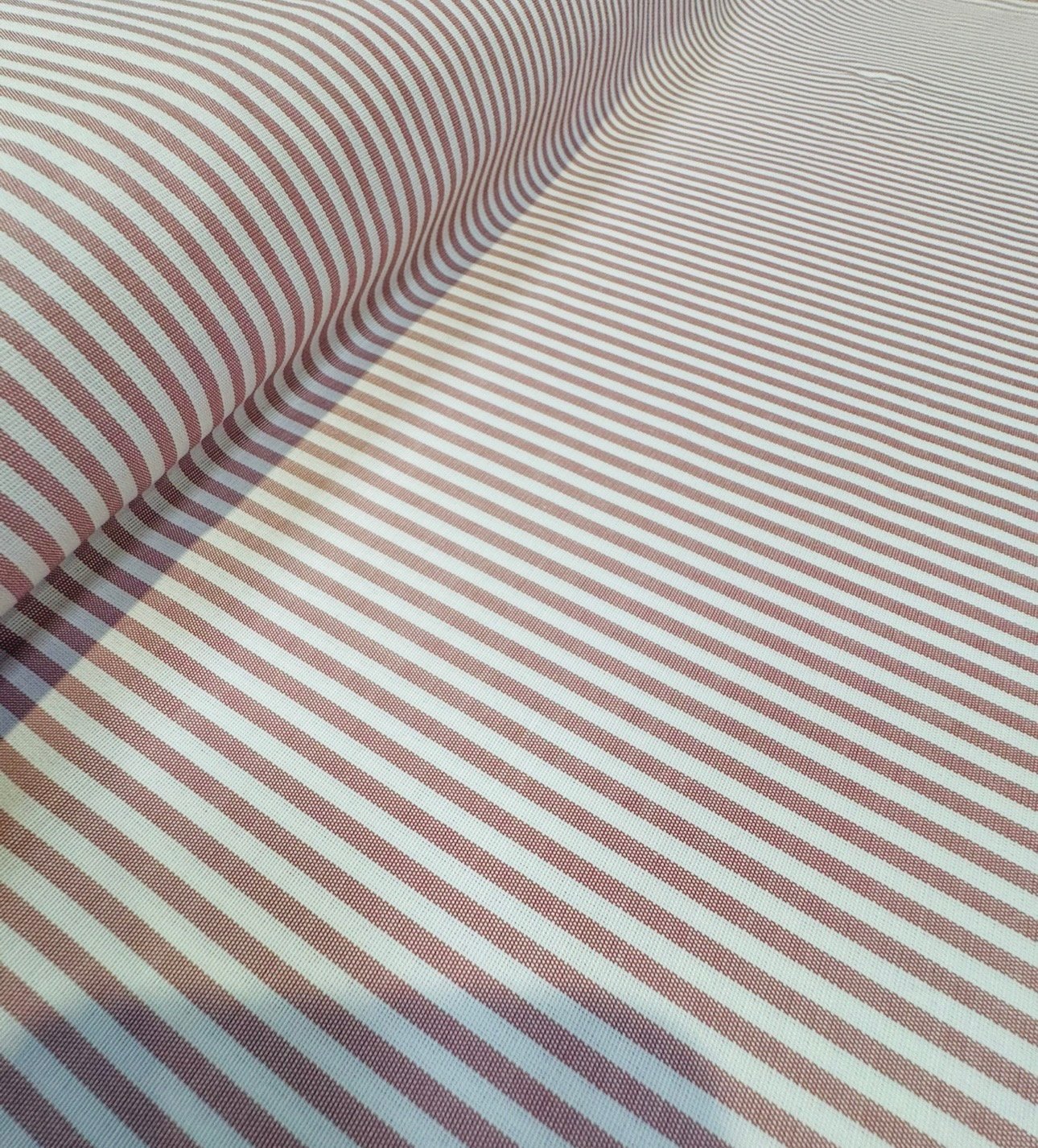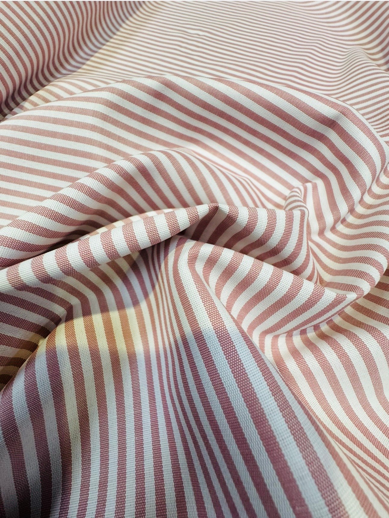 Tejido de rayas tipo vichy de 3 mm en color rosa maquillaje, ideal para confección y decoración. Su composición de 70% algodón y 30% poliéster ofrece un equilibrio perfecto entre suavidad, resistencia y fácil mantenimiento.