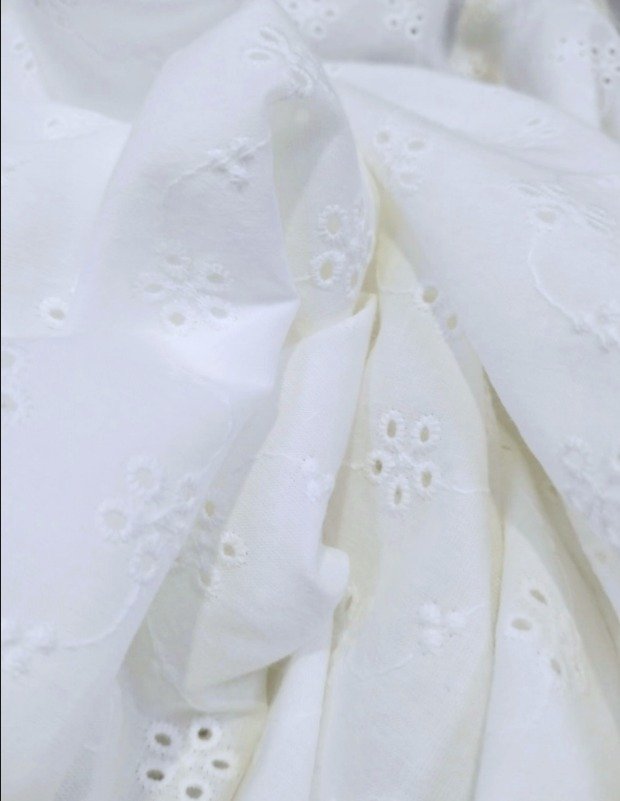 Tejido Batista Bordado Algodón Blanco