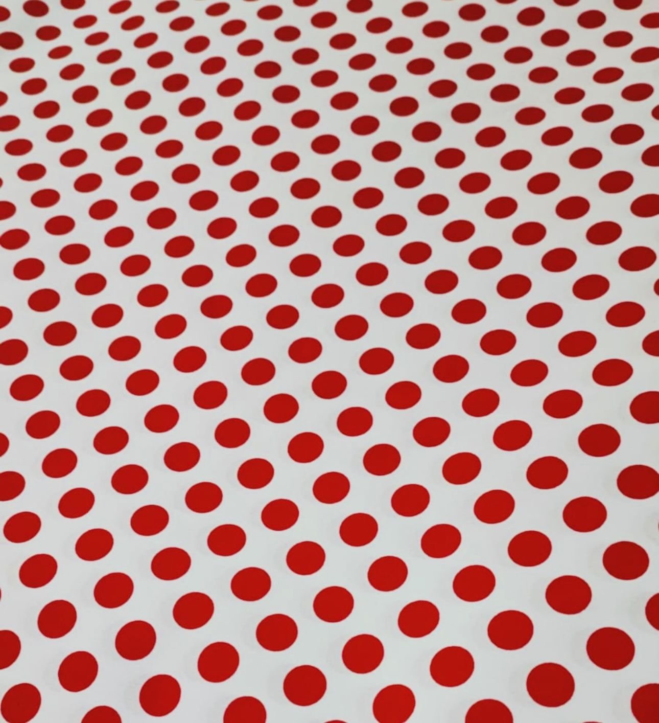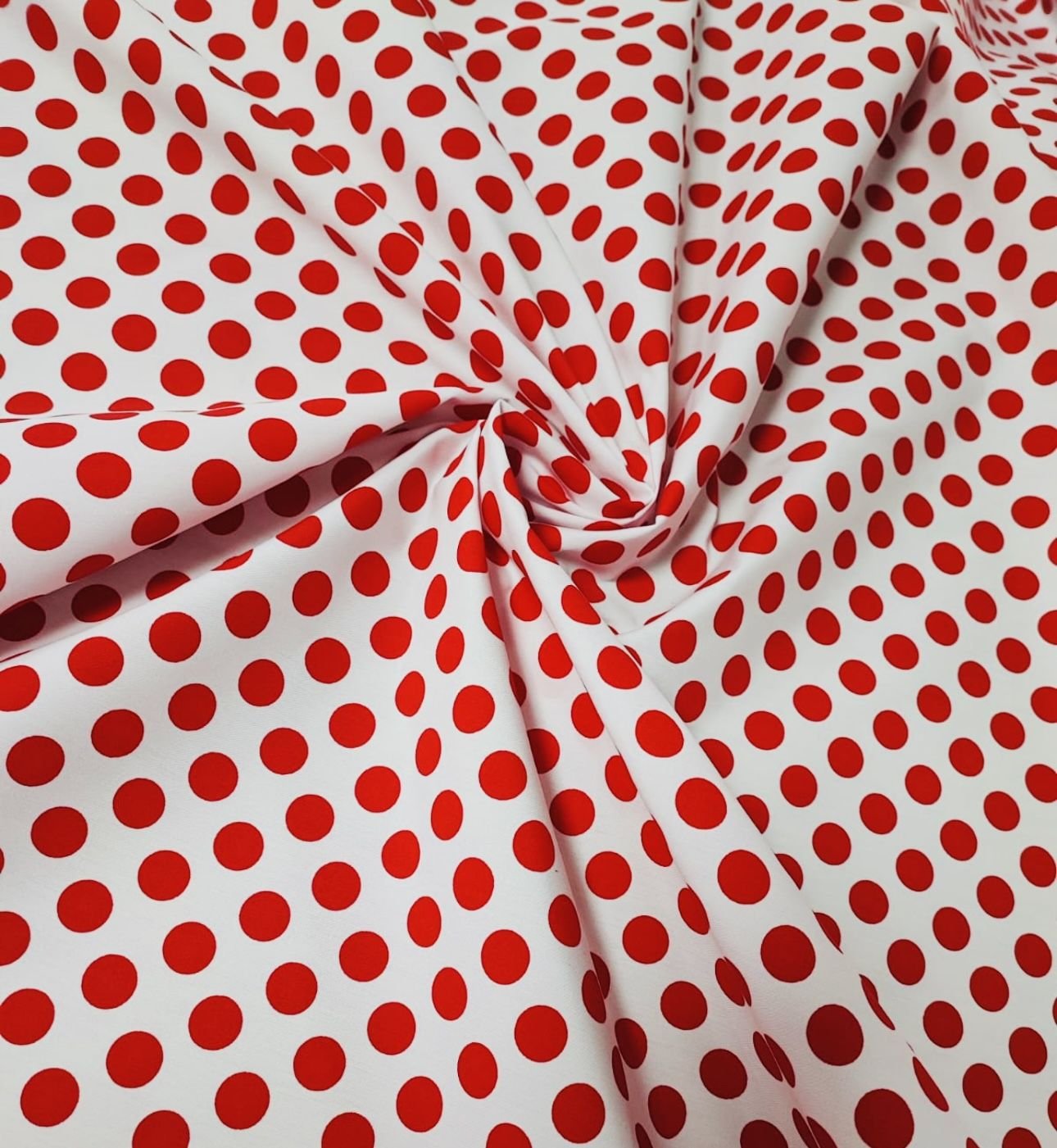 Tela de popelín con mucho cuerpo. Estampado de lunares de unos 2 cms.