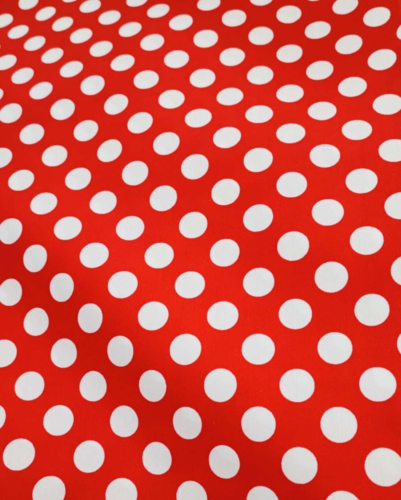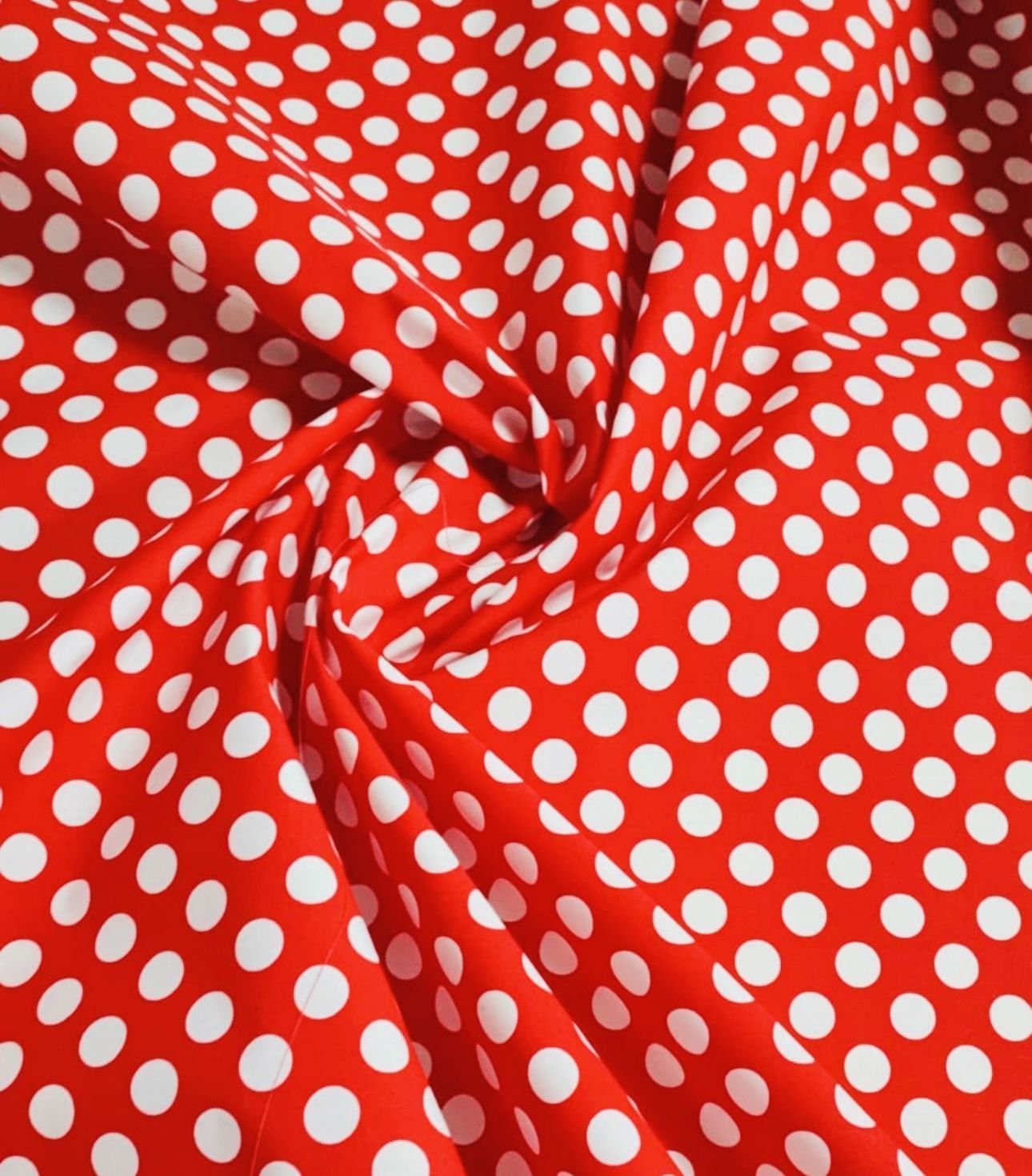 Tela de popelín con mucho cuerpo. Estampado de lunares de unos 2 cms.