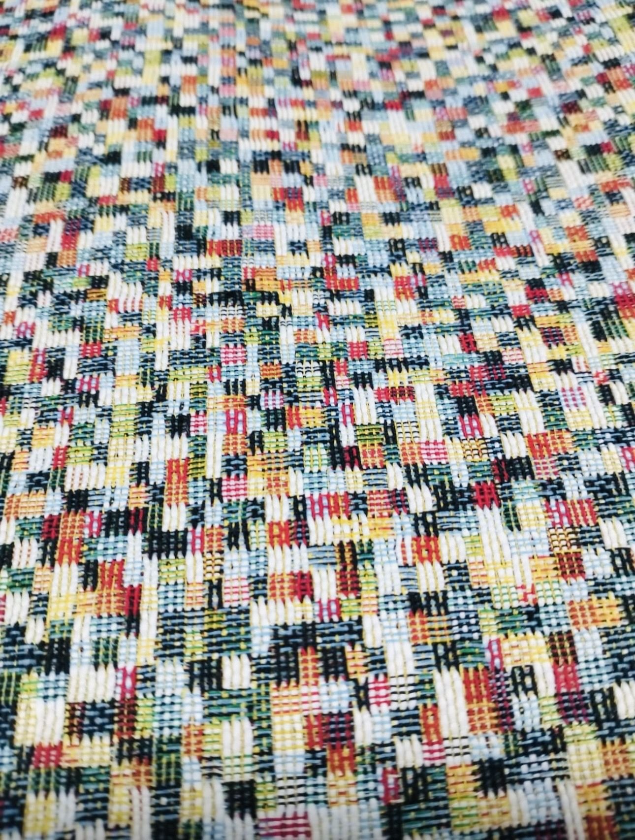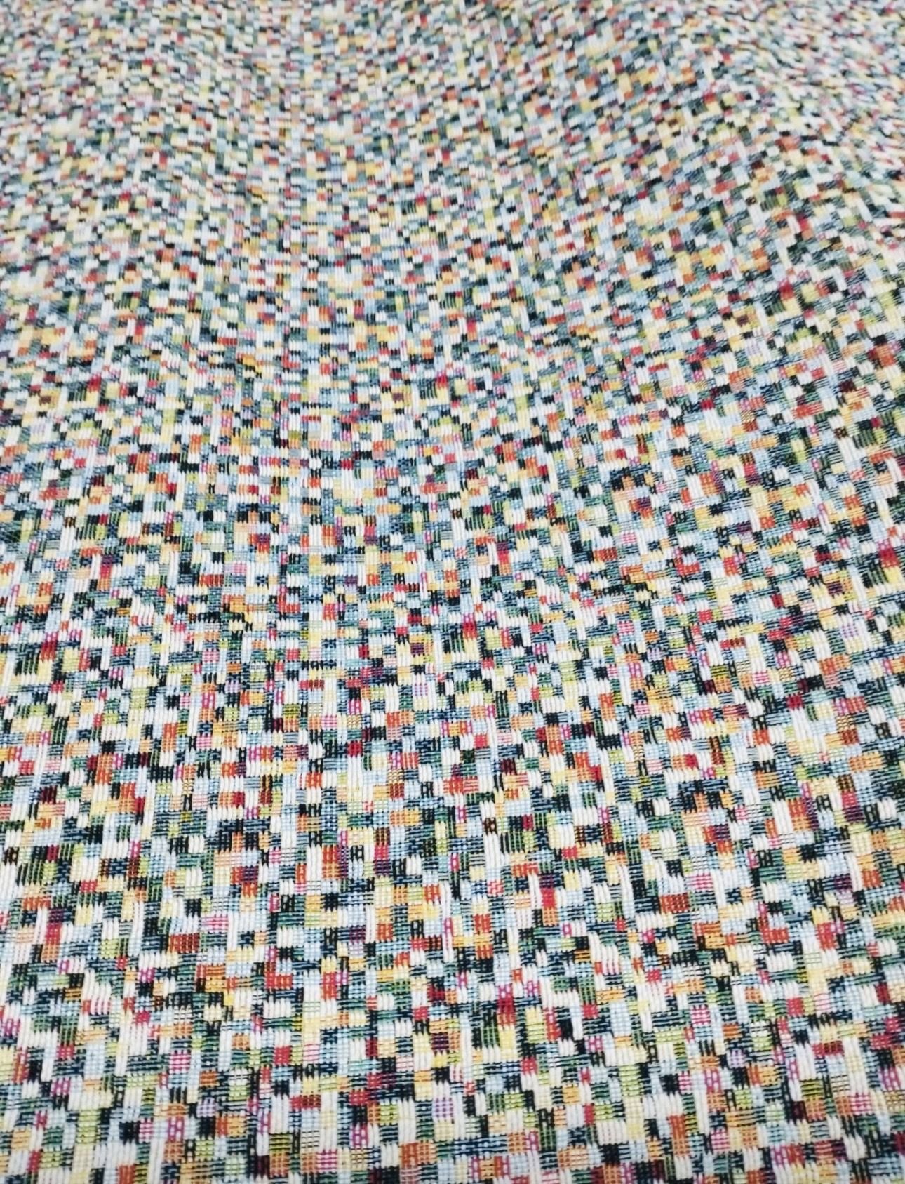 Añade un toque moderno y vibrante a tu hogar con esta llamativa tela gobelino chenilla de estampado geométrico mini. Suave al tacto gracias a la textura de chenilla y resistente por la combinación de algodón y poliéster, es una opción perfecta para proyectos de tapicería, cojines y cortinas. Con un ancho de 280 cm, esta tela permite cubrir grandes superficies de forma eficiente, ideal para darle un aire contemporáneo a cualquier ambiente.