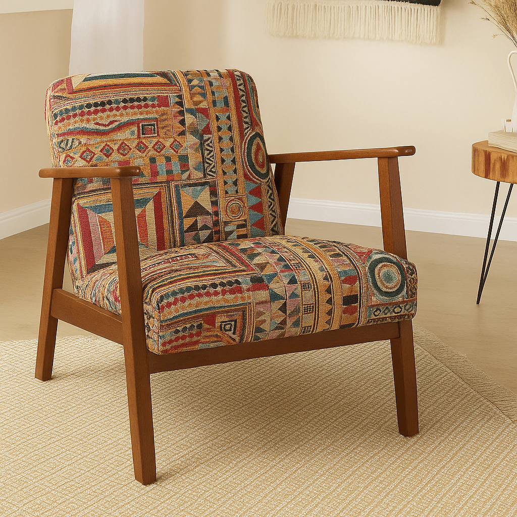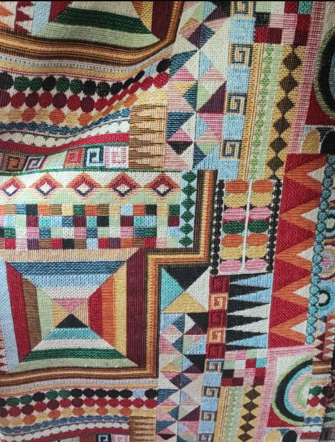 Tela de Loneta Jacquard estilo gobelino de colores muy vistosos toda en mosaico de figuras de rombos multicolor.
