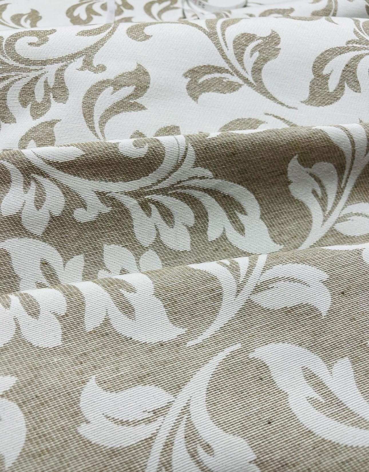 Tela ideal para cortina y para tapizar con dibujo hoja beige reversible modelo Fergie. Loneta gruesa totalmente opaca, con mucha caída y cuerpo reversible. Tela de gran calidad y durabilidad, gracias a la resistencia que ofrece al roce con el tejido. Tela para tapizar sofás, sillones, sillas y todo tipo de superficies. También puedes confeccionar cortinas, cojines, colchas y cabeceros de cama, así como accesorios y complementos, ya sean bolsos y mochilas.