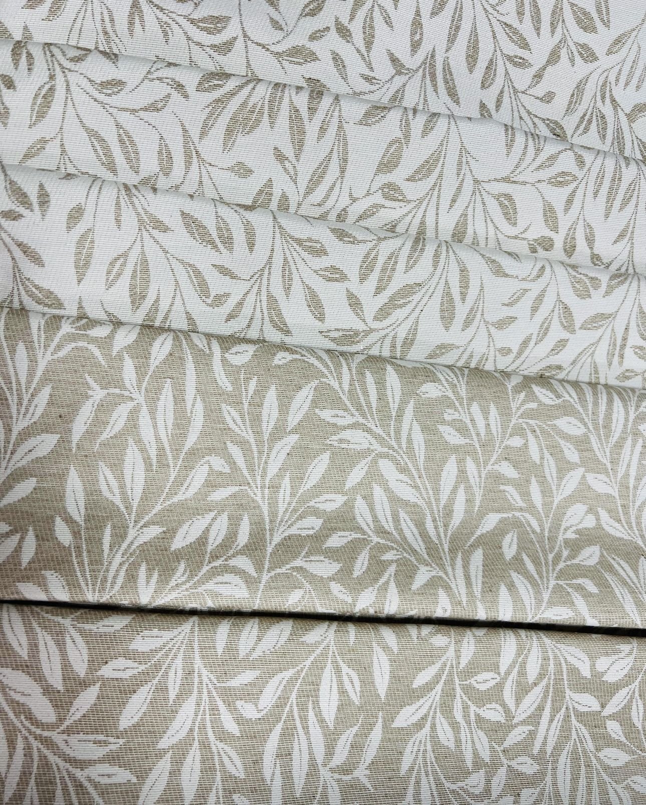 Tela ideal para cortina y para tapizar con dibujo hoja beige reversible modelo Valerie. Loneta gruesa totalmente opaca, con mucha caída y cuerpo reversible. Tela de gran calidad y durabilidad, gracias a la resistencia que ofrece al roce con el tejido. Tela para tapizar sofás, sillones, sillas y todo tipo de superficies. También puedes confeccionar cortinas, cojines, colchas y cabeceros de cama, así como accesorios y complementos, ya sean bolsos y mochilas.