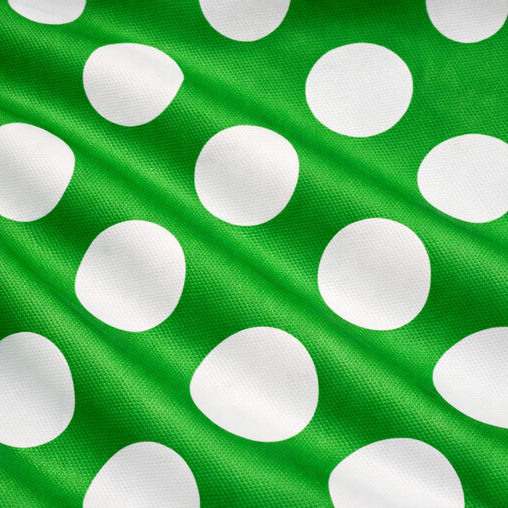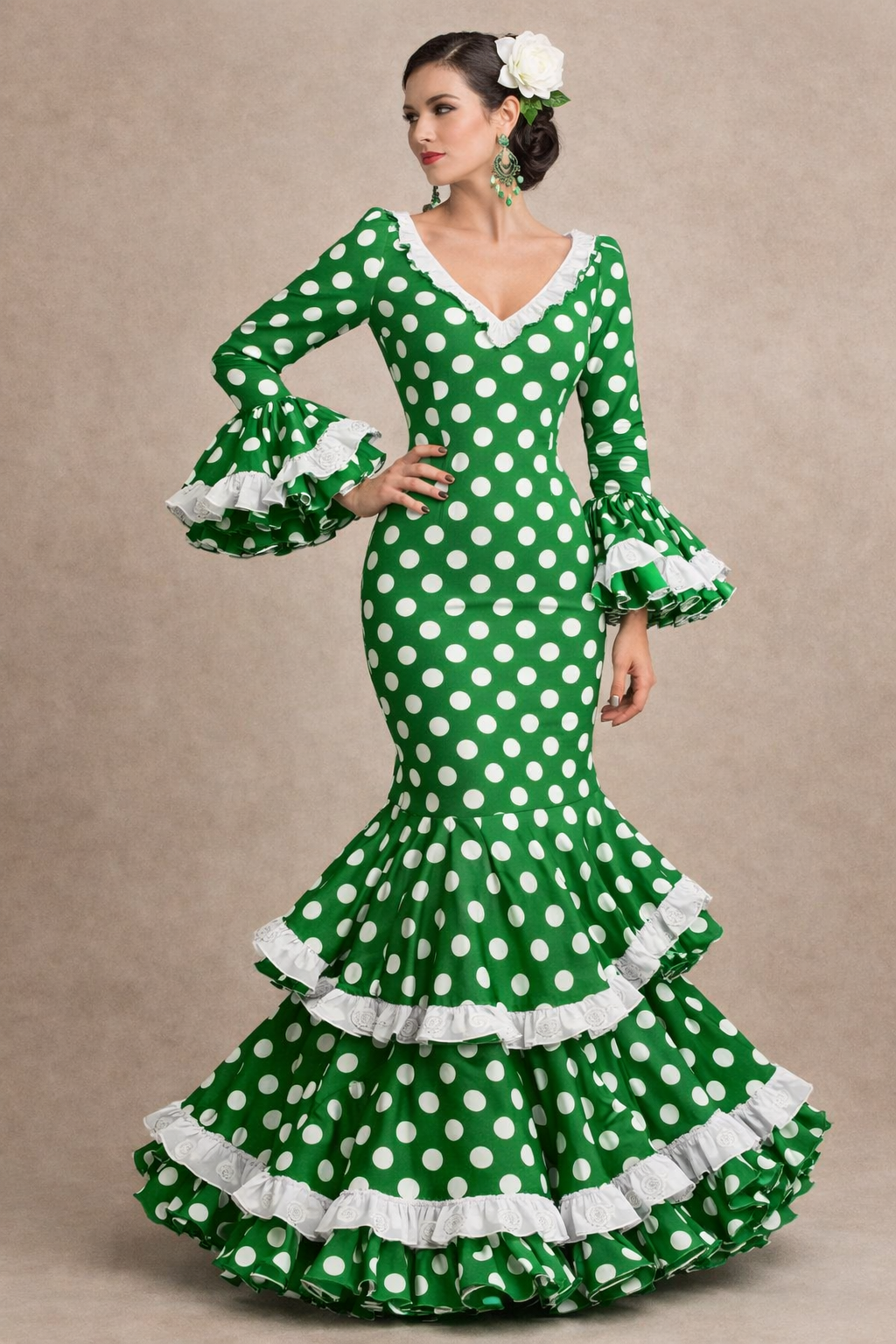 Popelín Candela Flamenco Lunares Blancos y Fondo Verde