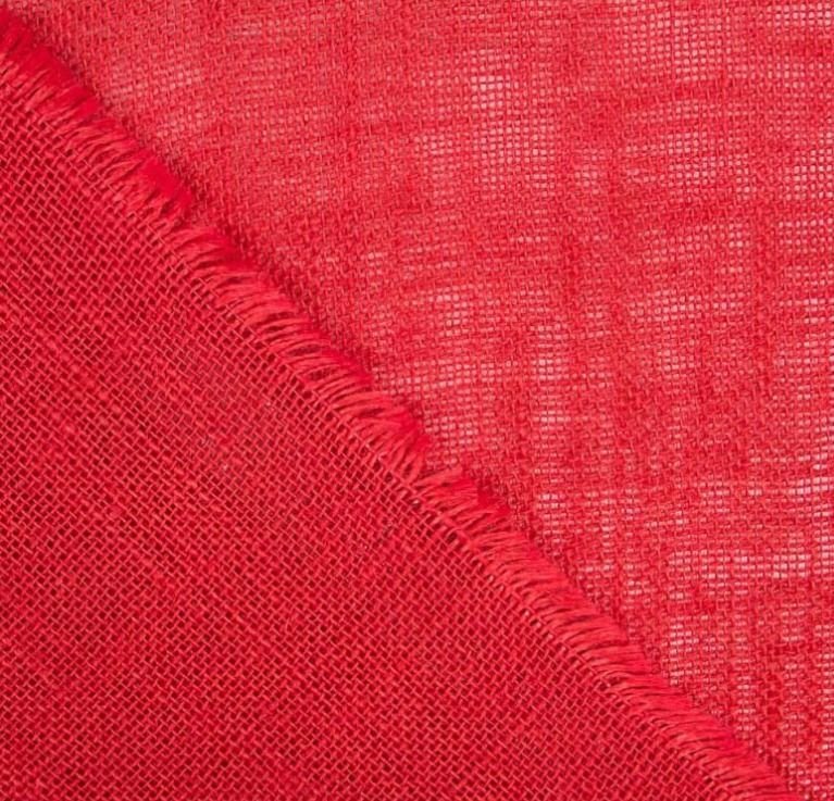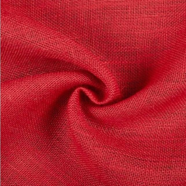 Tela de saco natural de color rojo para manualidades. El saco o tela arpillera de yute, es una tejido 100% natural y sin ningún tipo de tratamiento. Tela con cuerpo y rígida con aspecto rústico de yute. Saco ideal para manualidades, confección de cortinas, decoración y para tapizar.